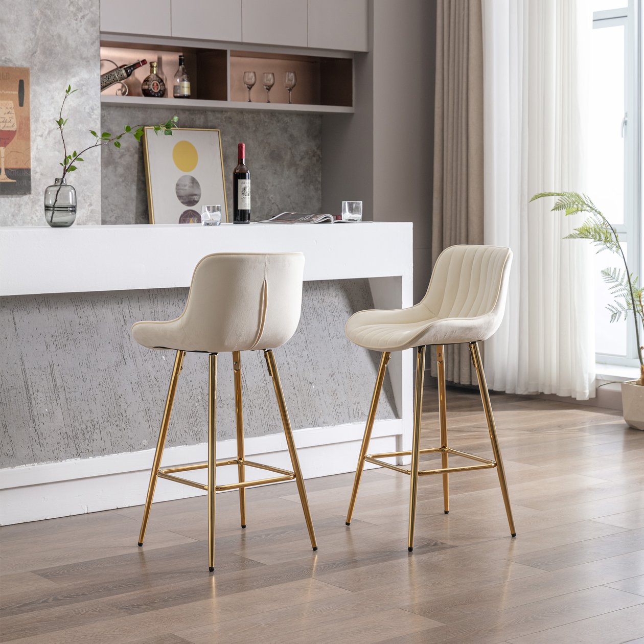 Elevate your kitchen or home bar with this elegant pair of cream velvet counter stools. Designed for style and everyday comfort, these stools combine a soft velvet seat, chic golden legs, and a convenient chrome footrest to create a refined look that complements modern and transitional interiors. Ideal for casual dining, entertaining, or adding a touch of luxury to your space.