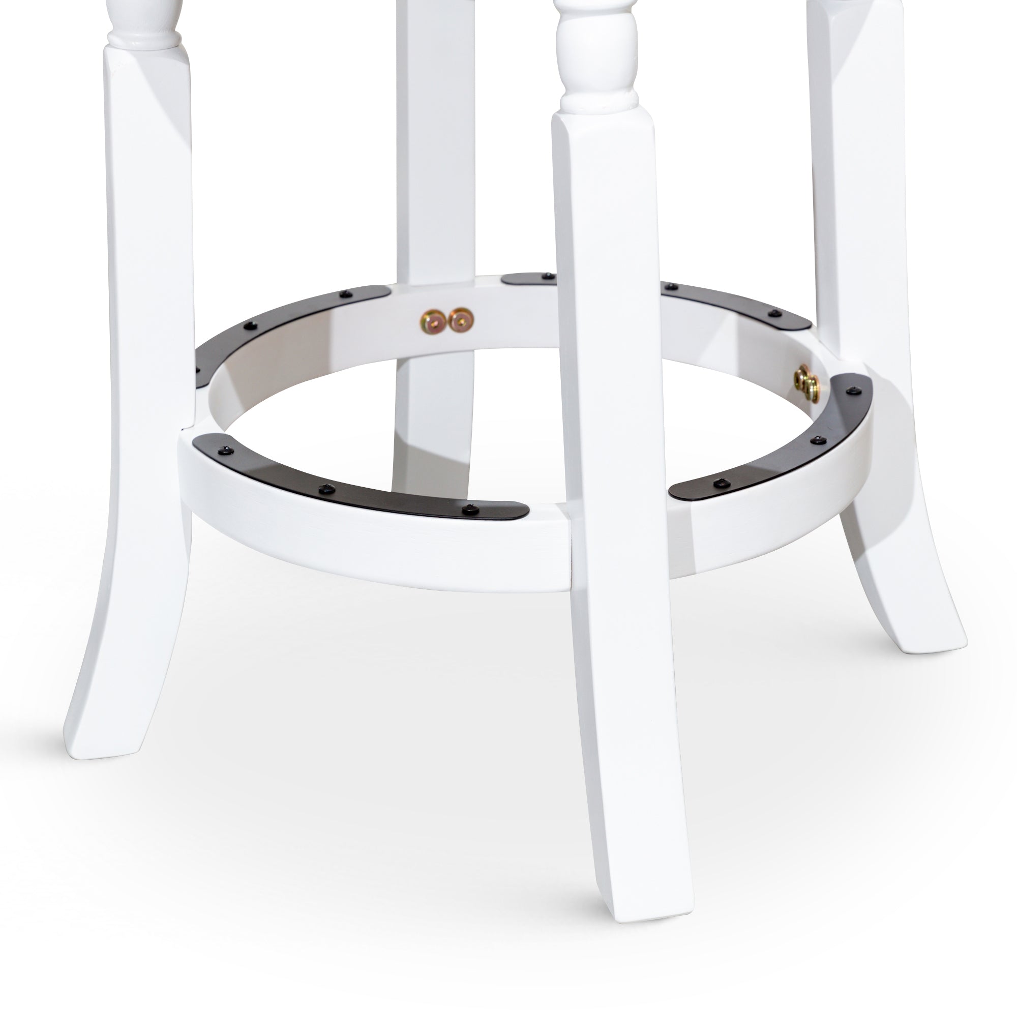 - 33 in COUNTER OR 30 in BAR HEIGHT: This attractive stool will add comfort and charm to your kitchen or bar area. Available in 24 in counter stool or 30 in bar stool heights. Seat dimensions: 17 in diameter, Footrest height: 24 in stool 8 in, 30 in stool 12 in. SIMPLE ASSEMBLY REQUIRED: Easy-to-follow instructions and hardware included.