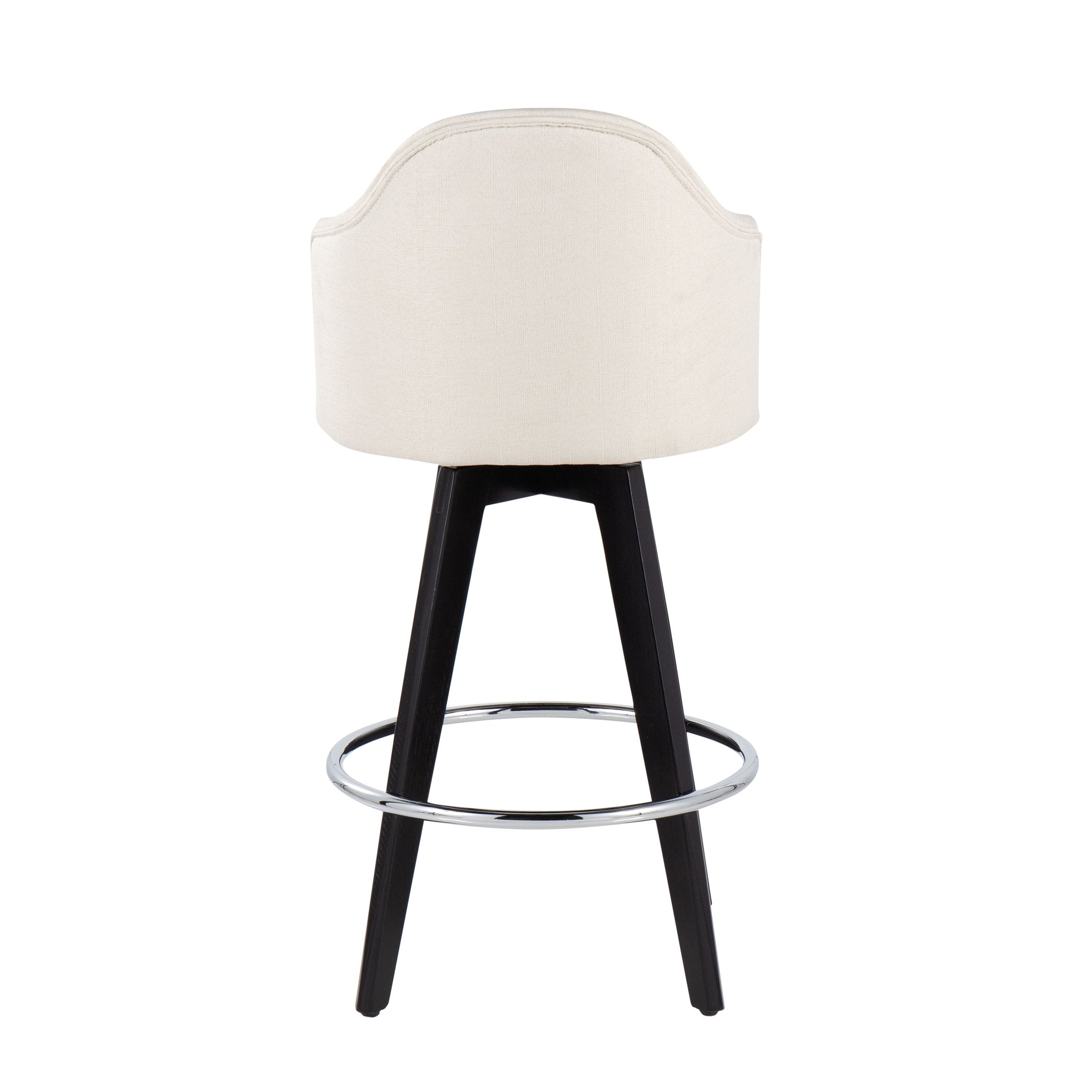 - Base and footrest: Sturdy black wood legs paired with a round chrome metal footrest for added durability and visual contrast
