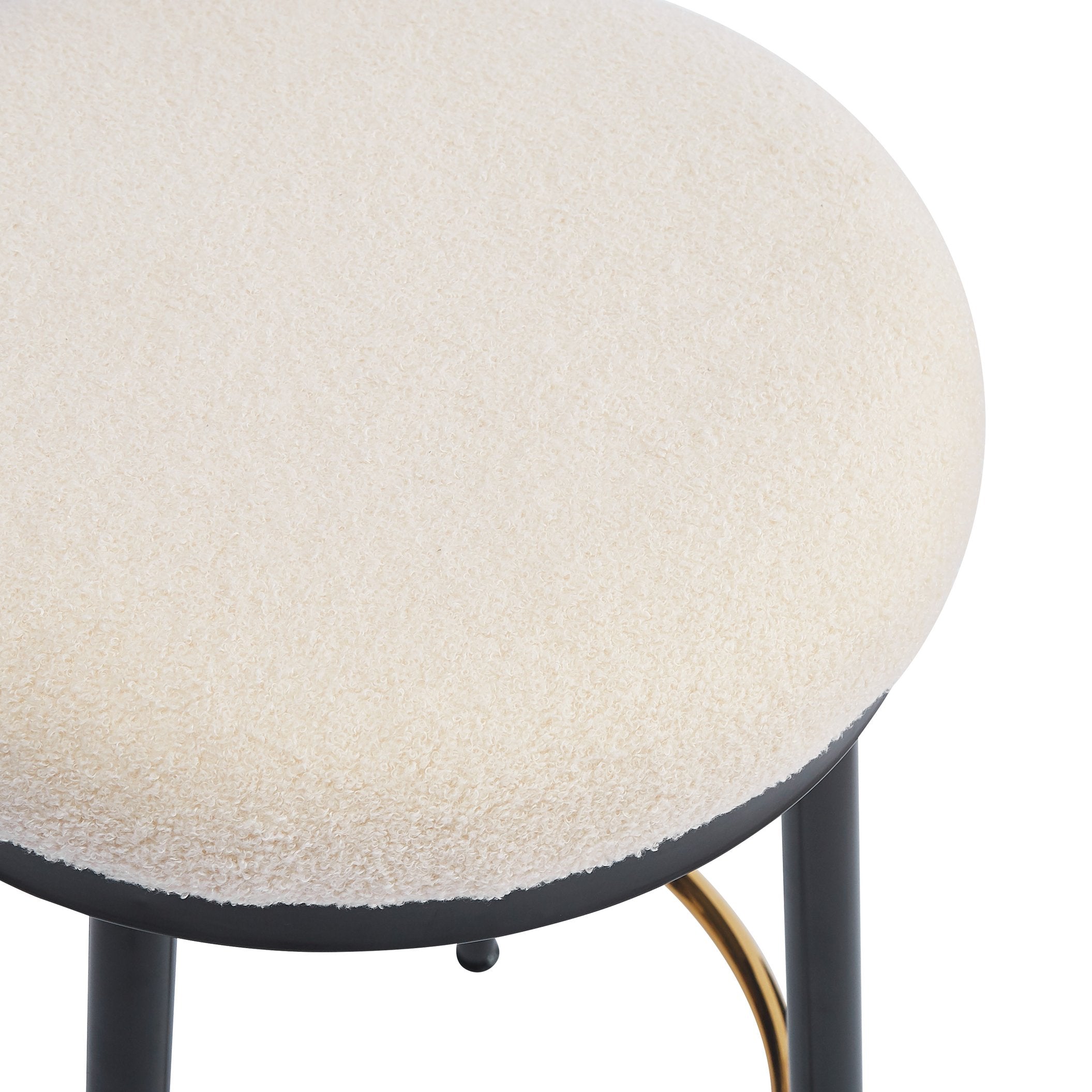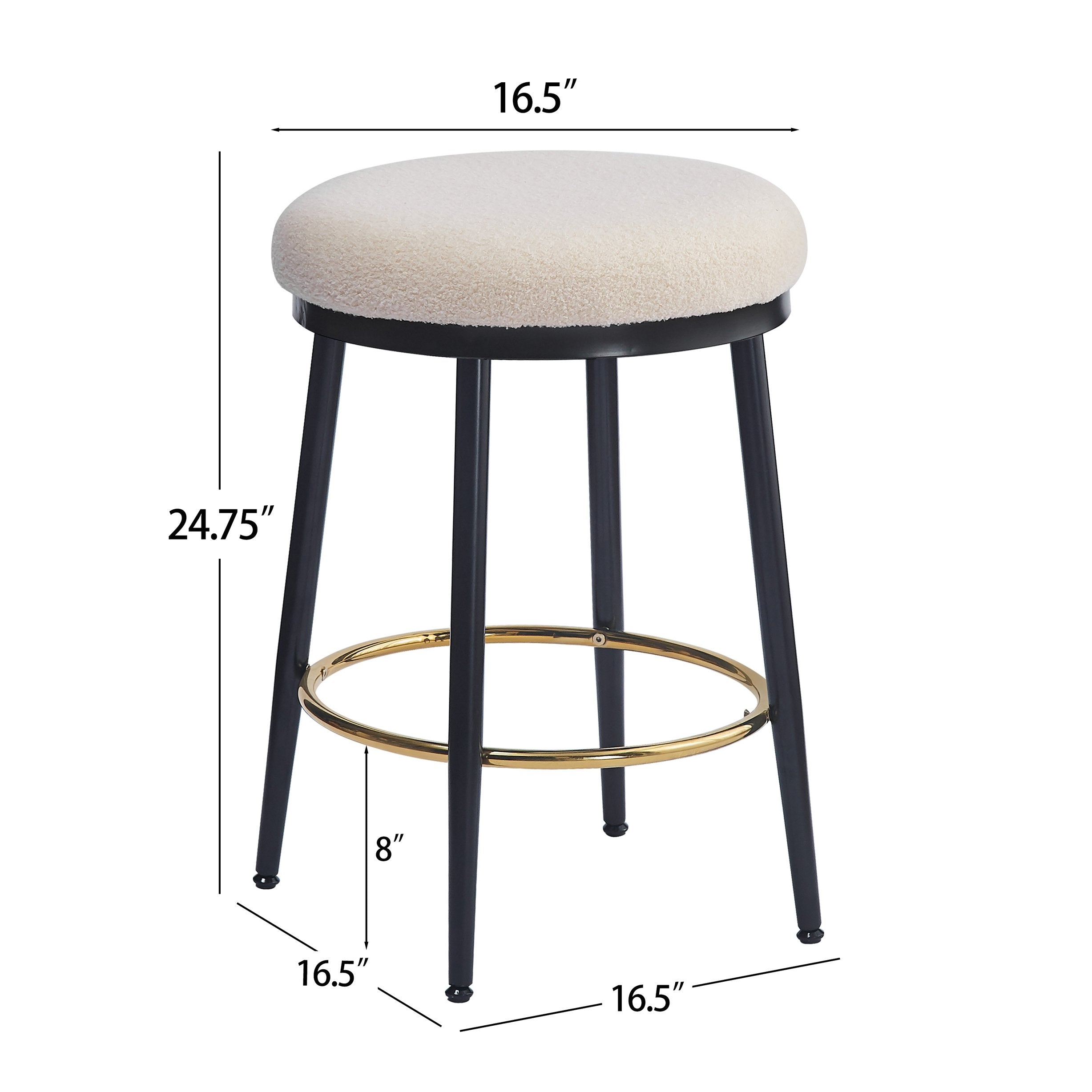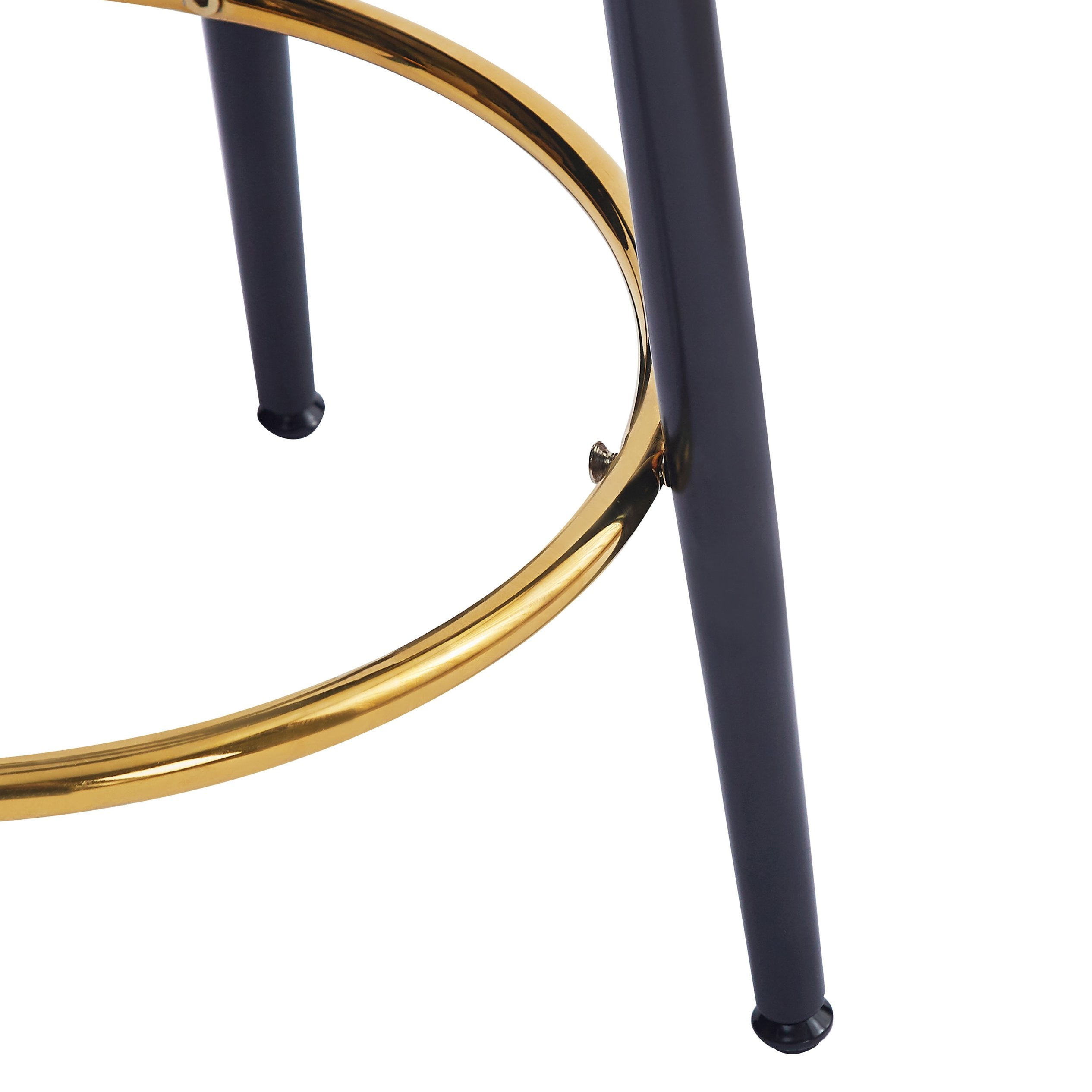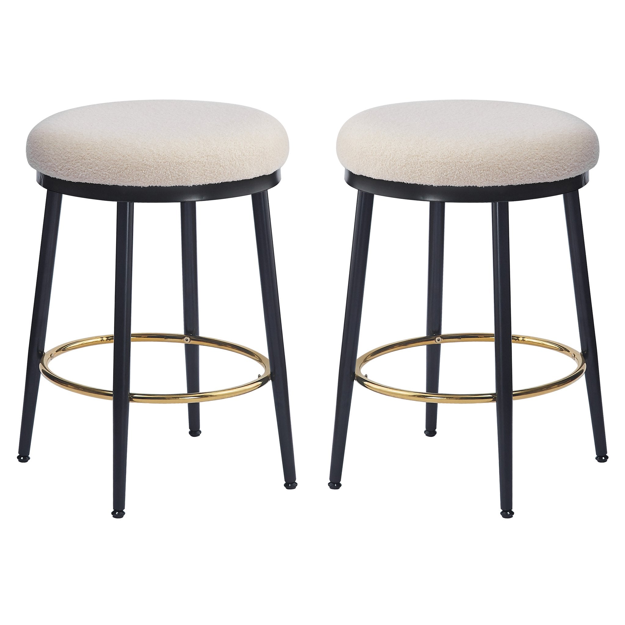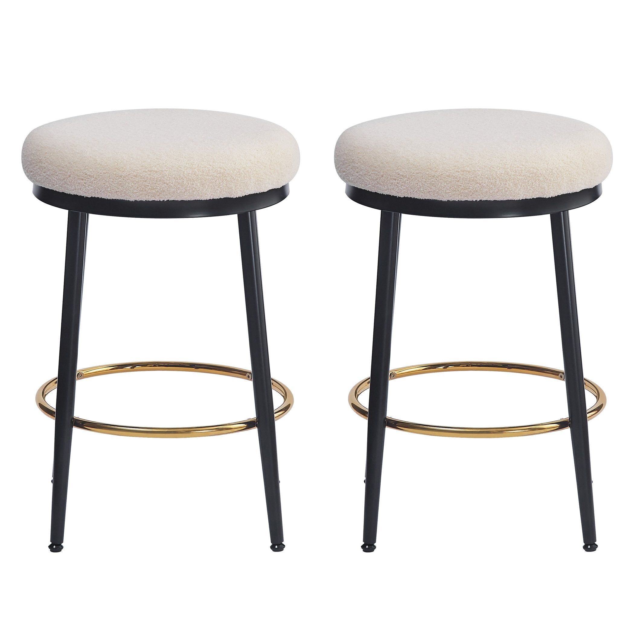Bring contemporary comfort and a touch of luxe to your kitchen, breakfast bar, or dining nook with this set of two modern backless counter stools. Featuring plush velvet upholstery, a sturdy iron frame, and a gilded circular footrest, these stools combine style and everyday functionality—perfect for casual meals, entertaining, or as extra seating in a bedroom or living area.