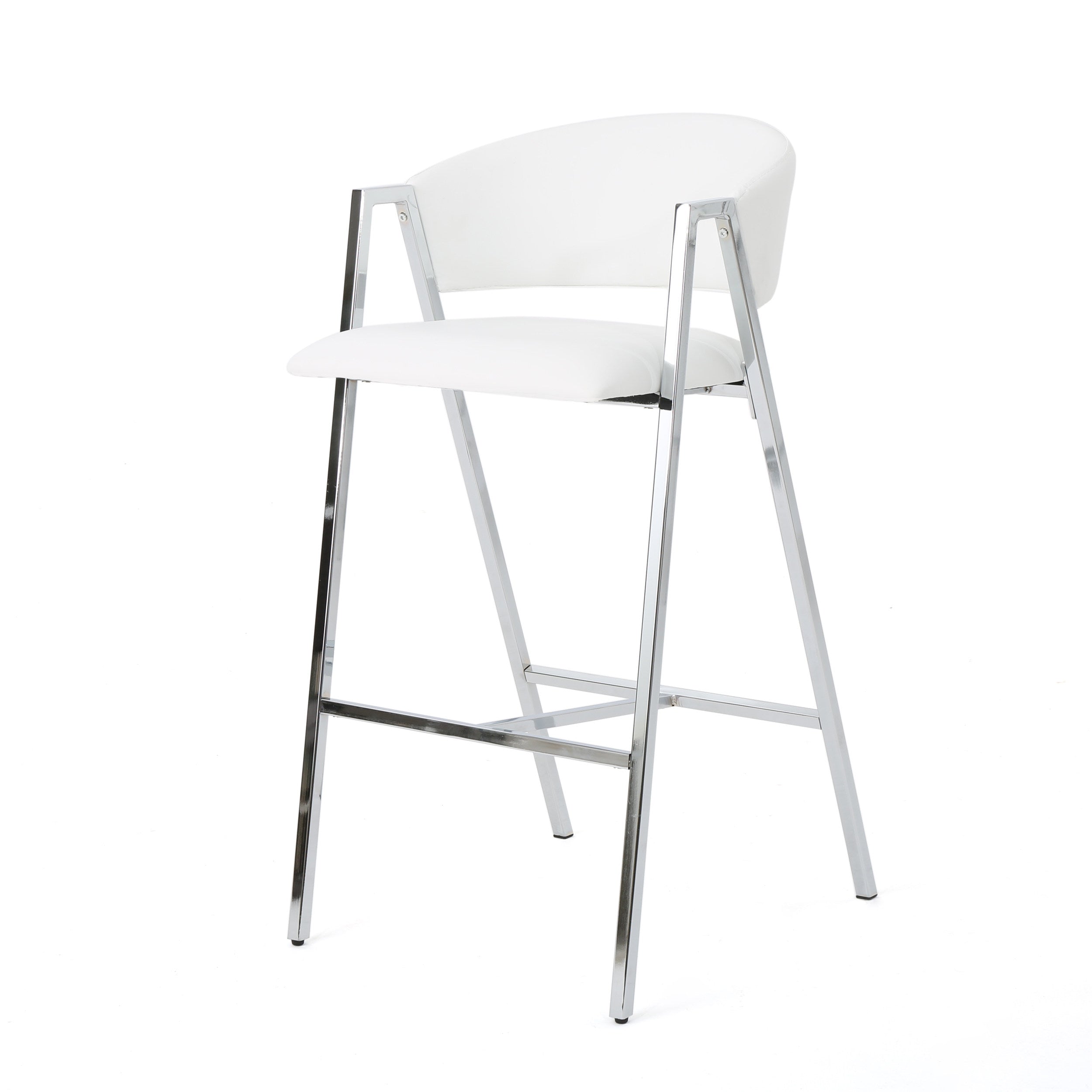 Bring contemporary comfort to your kitchen or home bar with this pair of modern bar stools. Clean lines, an ivory PU seat, and a chrome A-shaped frame combine for a timeless look that fits modern, transitional, and minimalist interiors. Thoughtfully designed for everyday use, these stools balance durability, comfort, and easy maintenance.