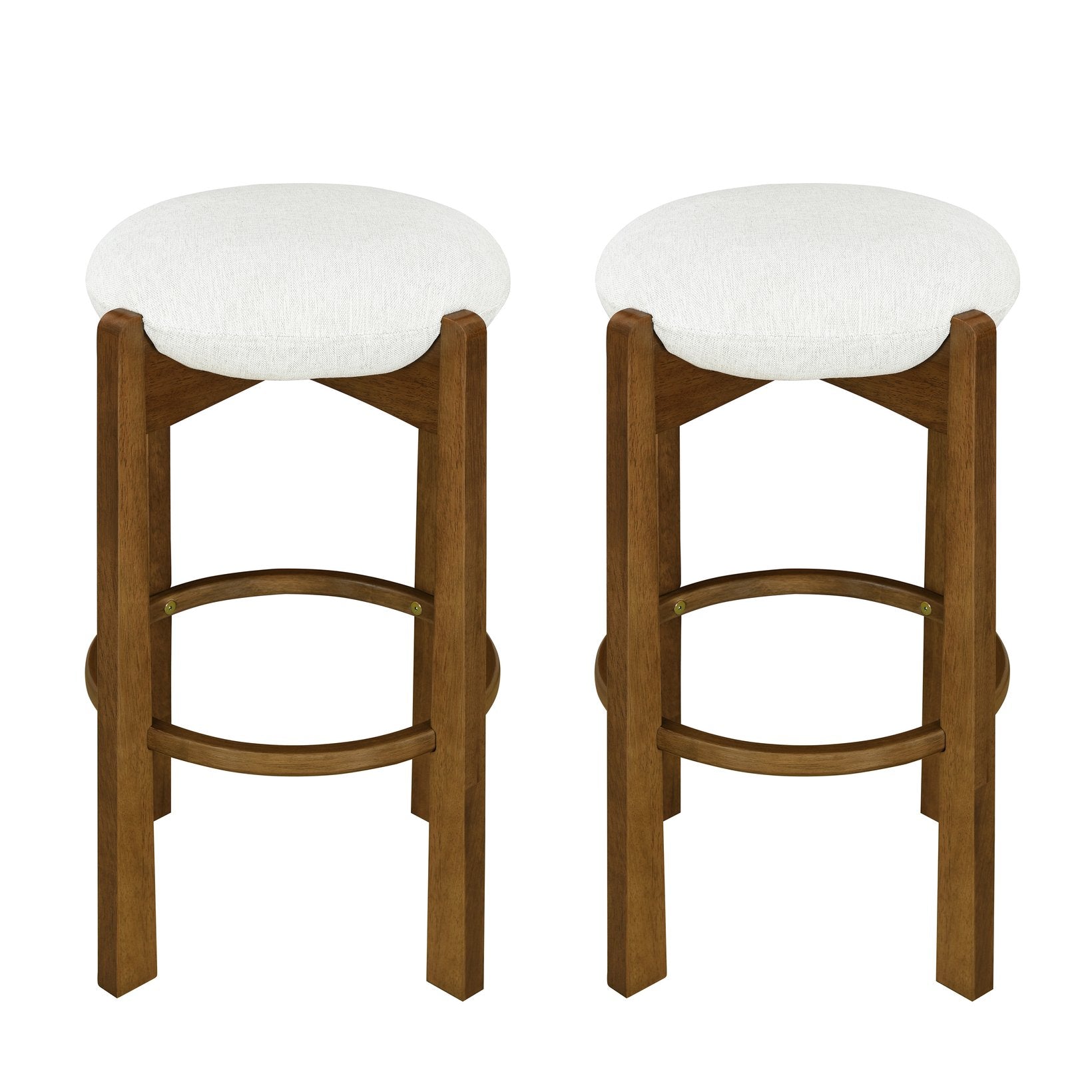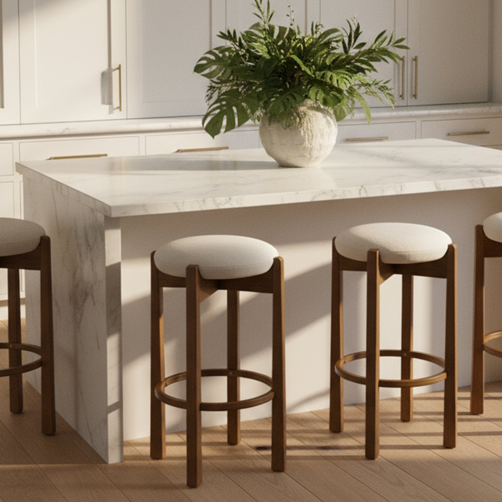 Elevate your kitchen or bar area with the Tara indoor wooden upholstered barstool—where classic craftsmanship meets everyday comfort. The combination of a deep walnut finish and ivory cushion creates a warm, inviting look that fits modern, traditional, and rustic interiors while delivering sturdy, long-lasting performance for daily use.