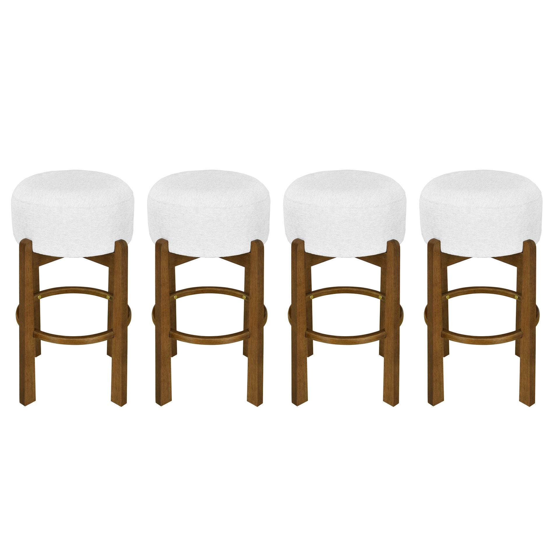 Bring warmth and comfort to your kitchen or bar with this set of four Vera wooden upholstered barstools. Thoughtfully designed for everyday use, each stool pairs a richly finished dark walnut frame with a soft ivory cushion for a balanced look that complements modern, rustic, and transitional interiors. Built from sustainably sourced rubberwood and reinforced for stability, these stools offer lasting durability and comfortable seating for home entertaining or casual dining.