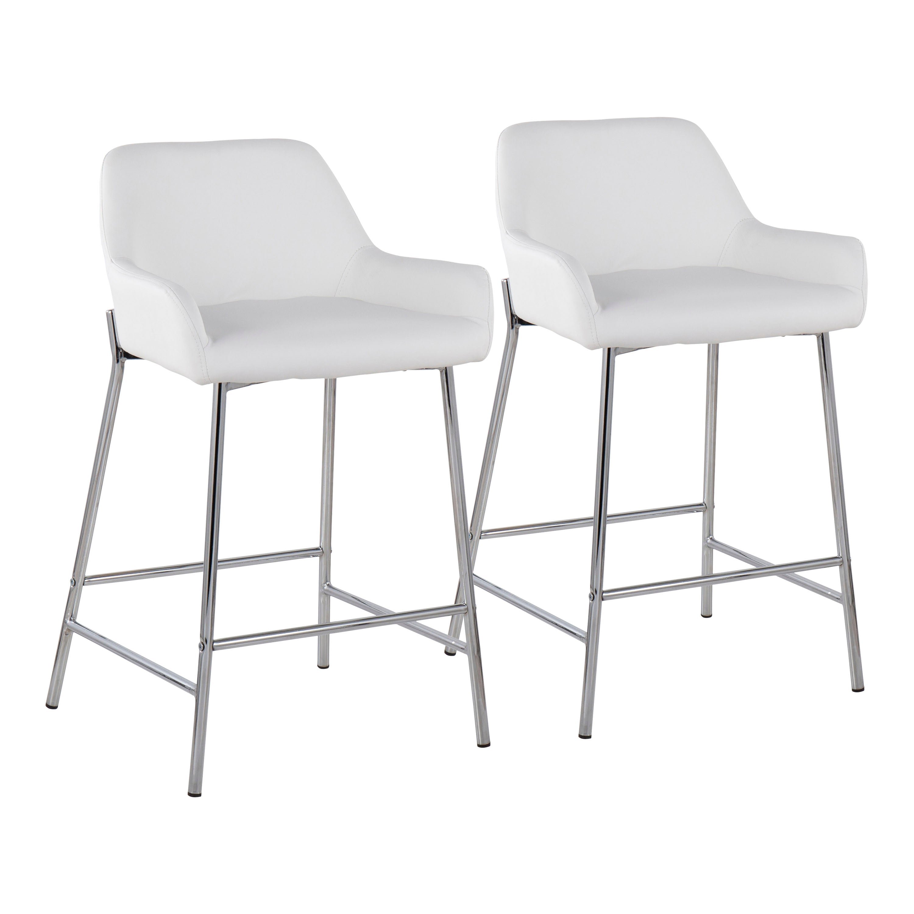 Add modern flair and everyday comfort to your kitchen, breakfast bar, or counter with the Daniella counter stool by LumiSource. This fixed-height set of two stools pairs a clean white faux leather seat and back with a polished chrome metal frame for a contemporary look that’s both durable and easy to maintain. The padded seat and supportive backrest deliver comfortable seating for casual dining or entertaining, while the compact footprint fits smaller spaces without sacrificing style.