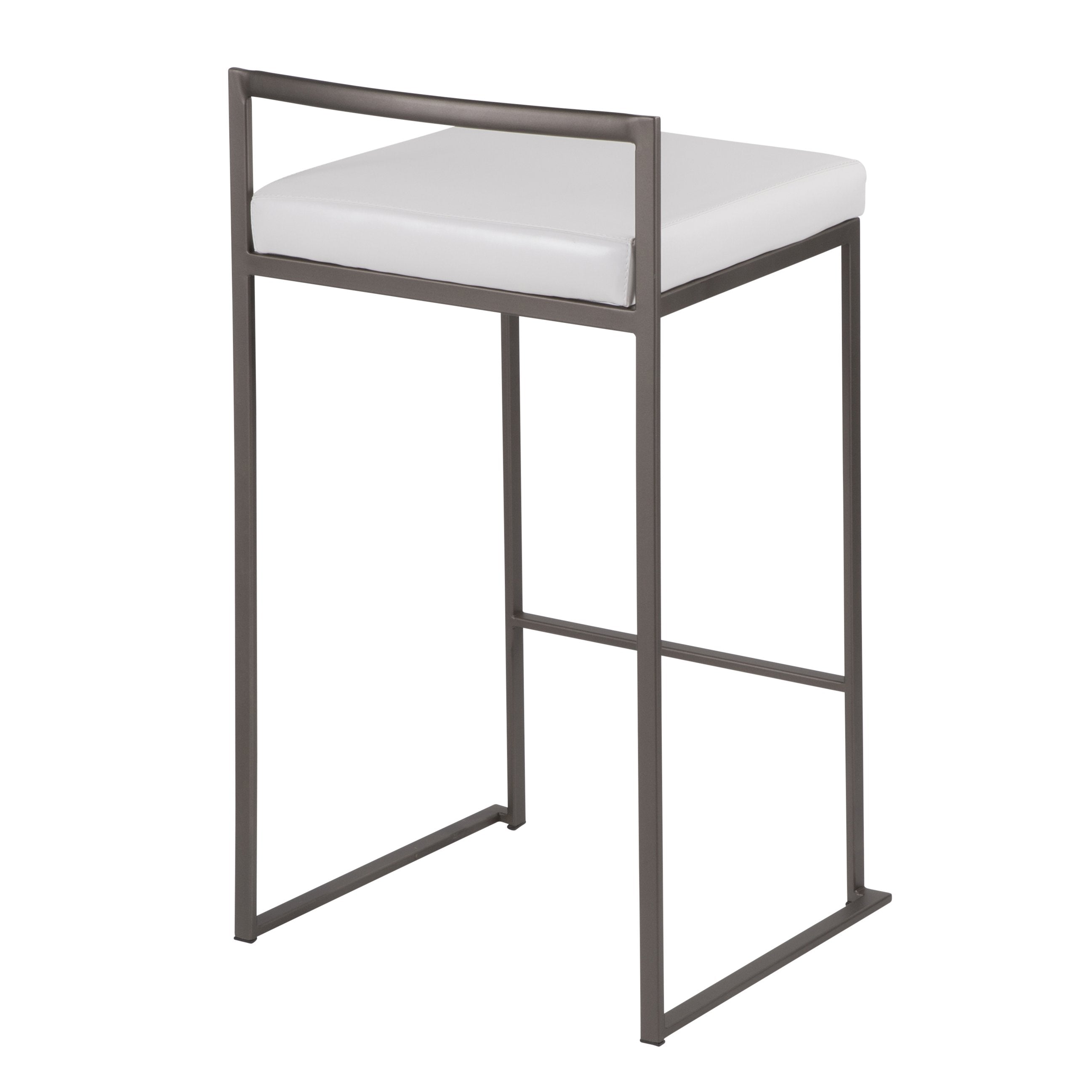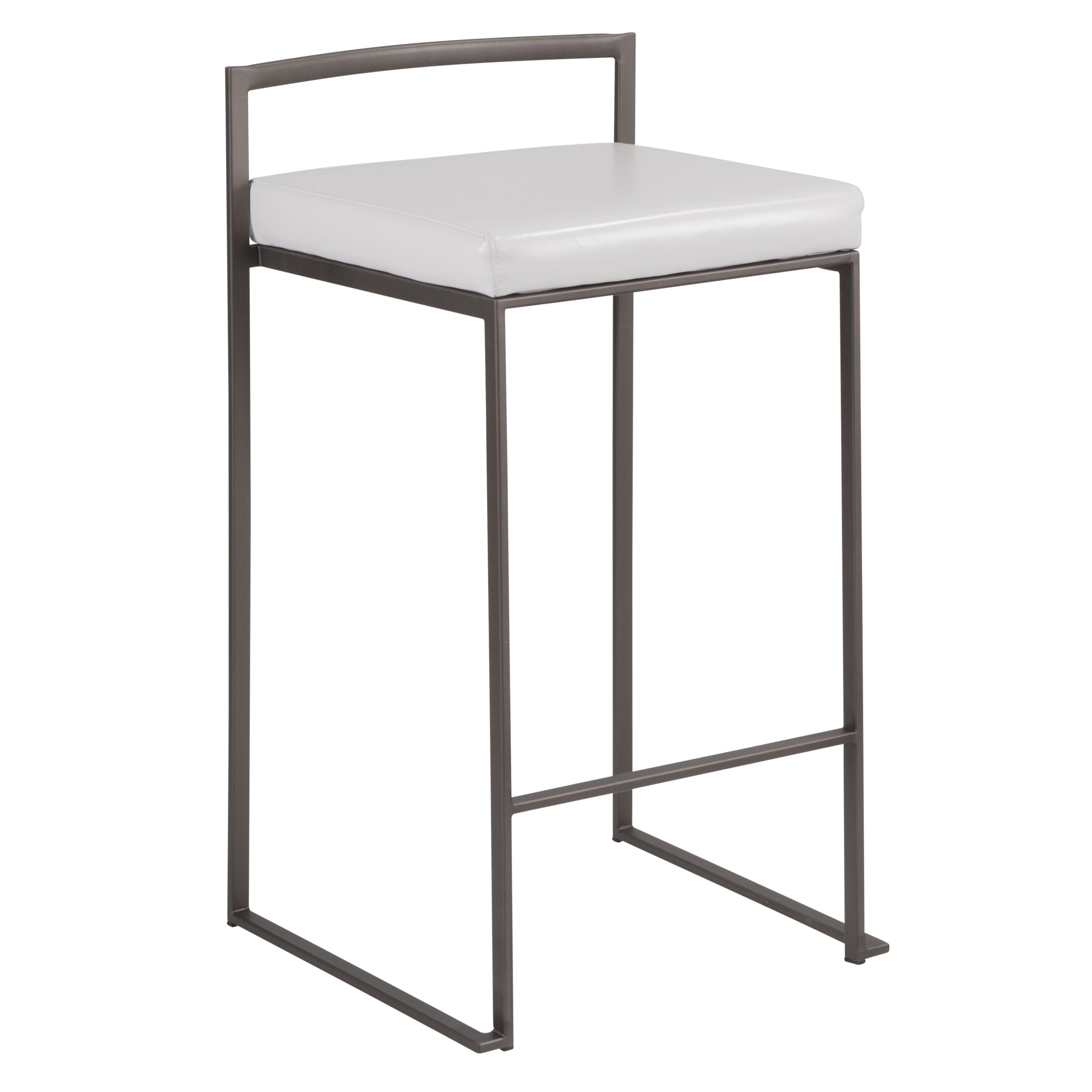Bring modern industrial style and everyday comfort to your kitchen, bar, or eat-in counter with this set of three Fuji stackable counter stools. Clean lines, a slim antique metal frame and a plush white faux leather cushion deliver a polished, versatile look that fits contemporary and transitional interiors. The stackable design saves space when not in use, making these stools ideal for both daily dining and entertaining.