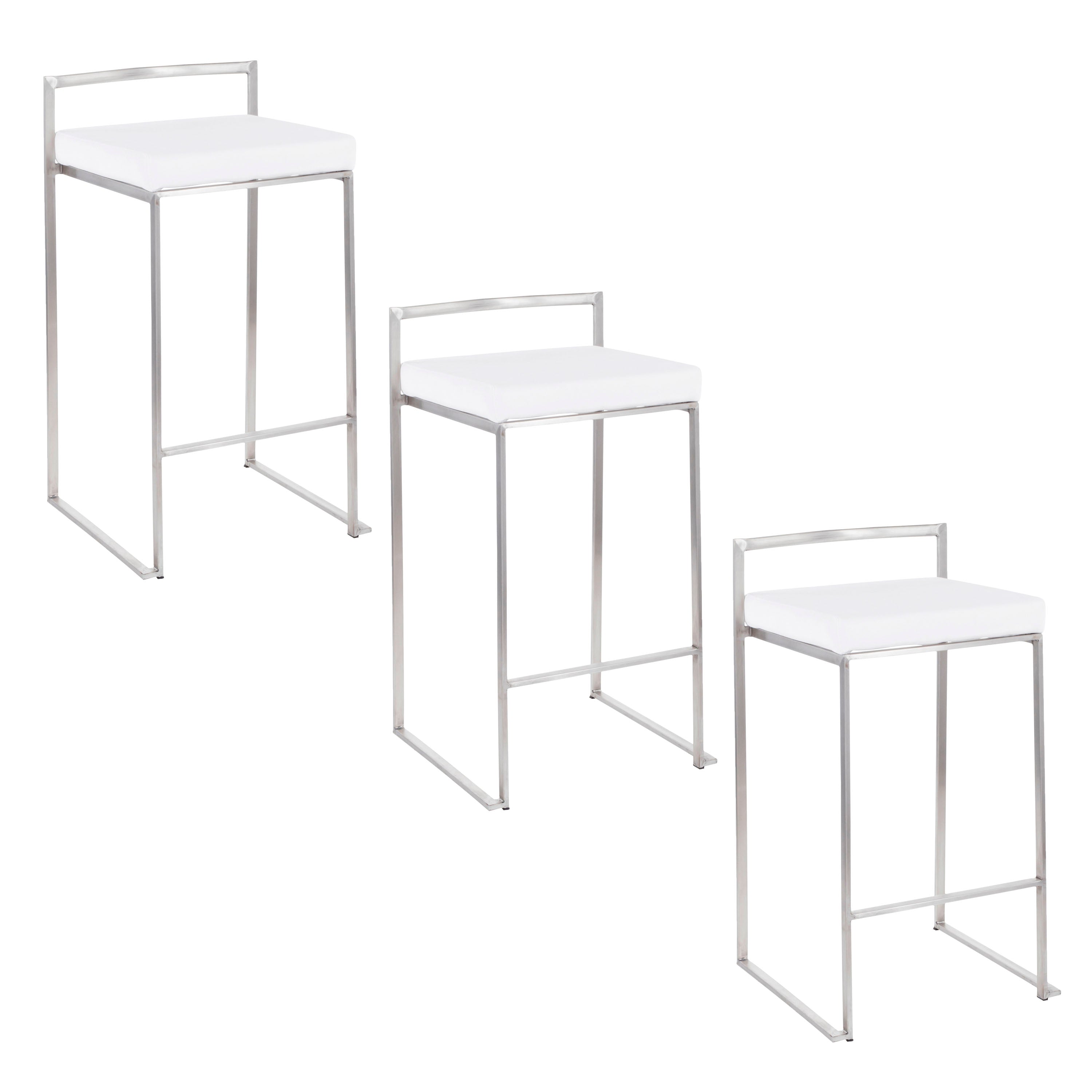 Elevate your kitchen or bar area with these sleek, modern counter stools that blend minimalist stainless-steel lines with a luxuriously padded white velvet seat. Designed for everyday comfort and convenient storage, this set of three offers a refined look that complements contemporary and transitional interiors while remaining practical for entertaining.