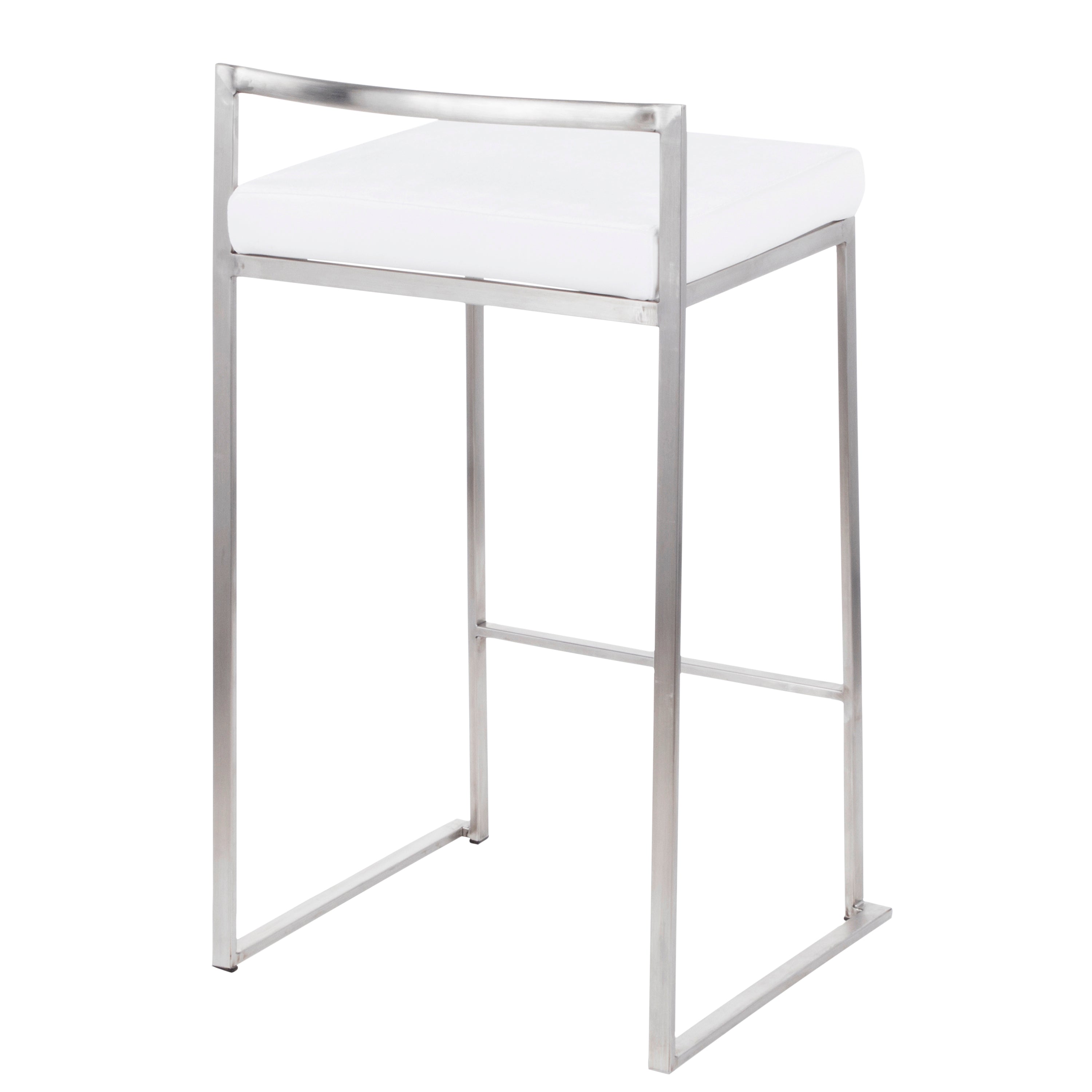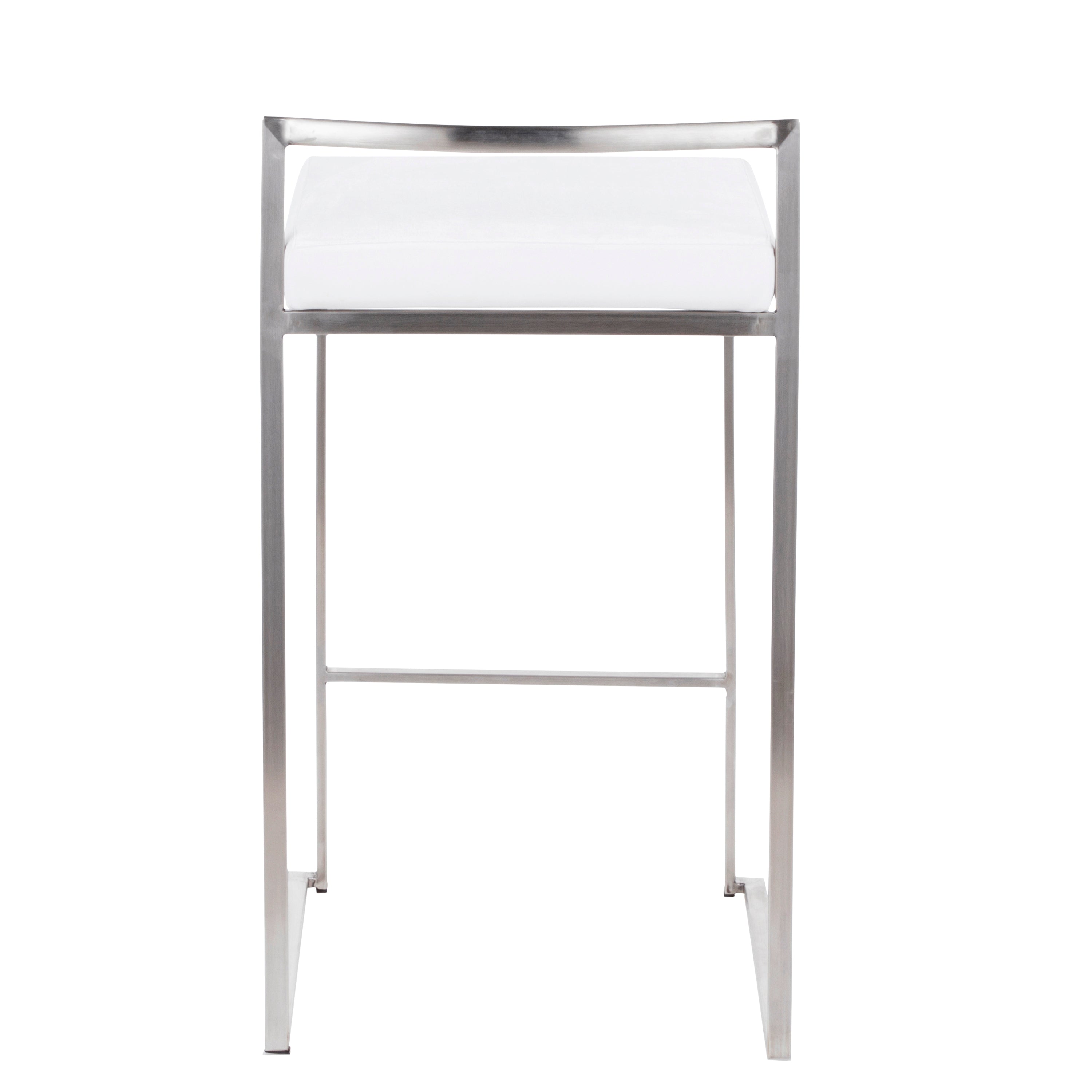 - The simple elegance of the original design LumiSource Fuji Stacker Counter Stool belies its astonishing comfort. Lightweight thin lines create a simplistic fully assembled frame and backrest to support a thick padded seat cushion. A stackable design for easy storage makes this a great stool for entertaining. With its simple stylishness, the Fuji is sure to match any decor. Available in many color combinations, choose the look that best fits your dining space.