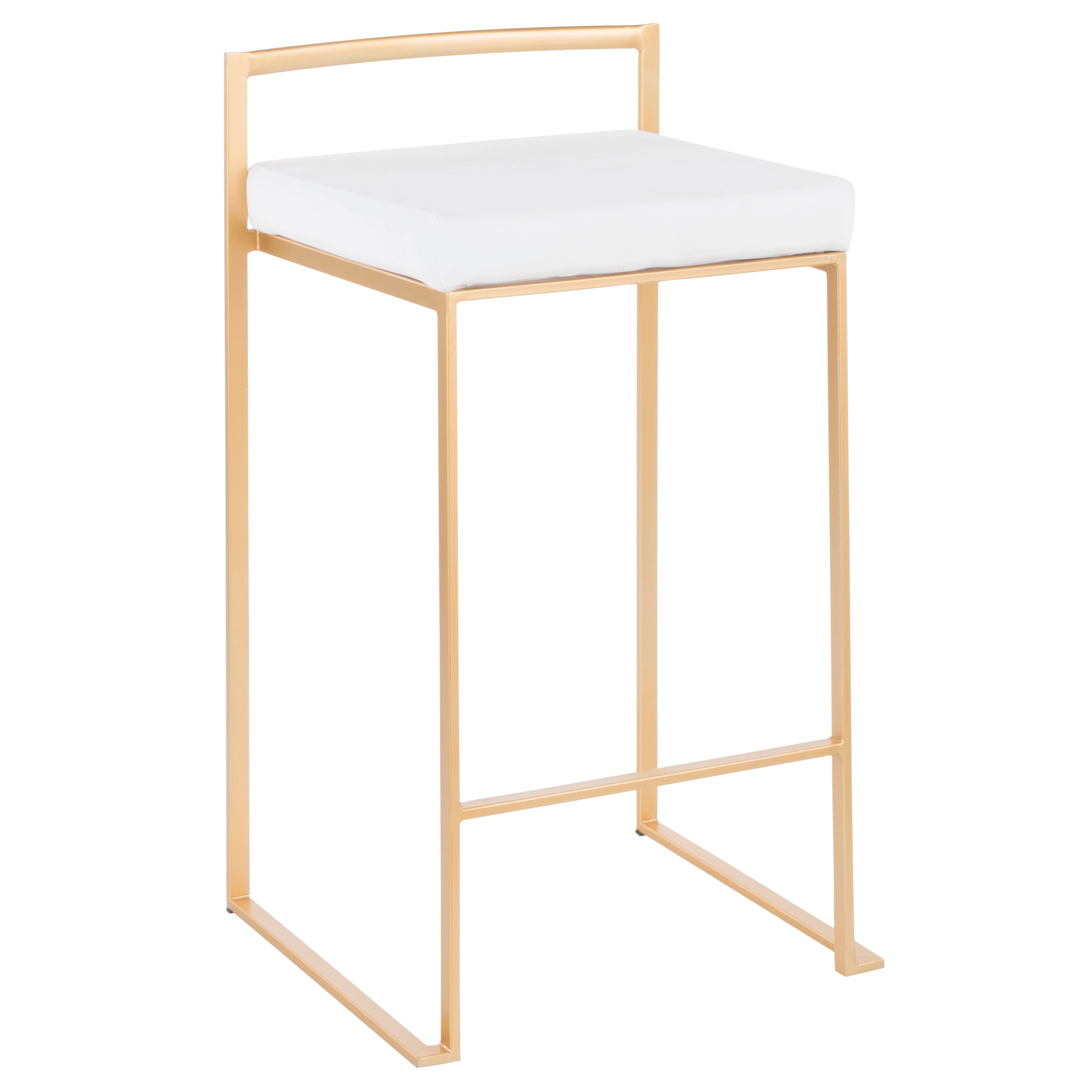 Add modern glamour to your kitchen or bar area with these Fuji counter stools — a refined combination of sleek gold frames and plush white velvet cushions that deliver both style and comfort. Designed for everyday use and effortless entertaining, the stackable Fuji stools save space without compromising on support. Each stool offers a cushioned seat and a streamlined silhouette that complements contemporary, glam, and transitional interiors.