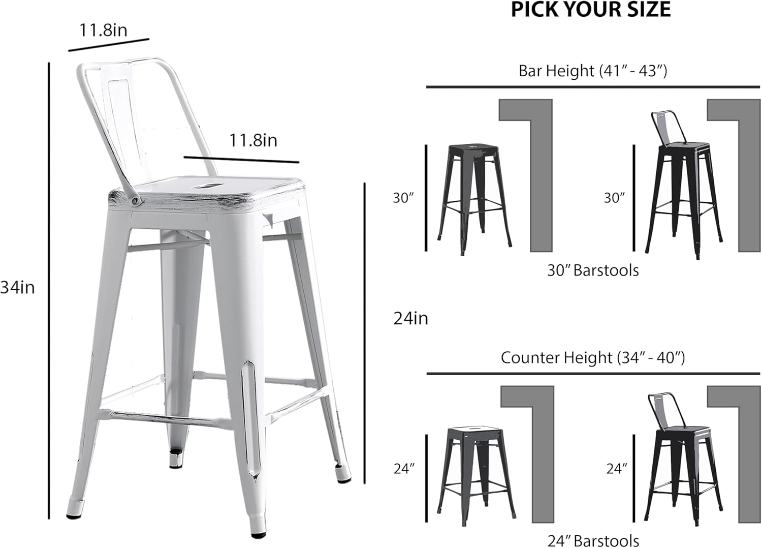 - Each barstool measures 16.5"L x 33.5"H x 16.5"D and weighs 9.5 lbs