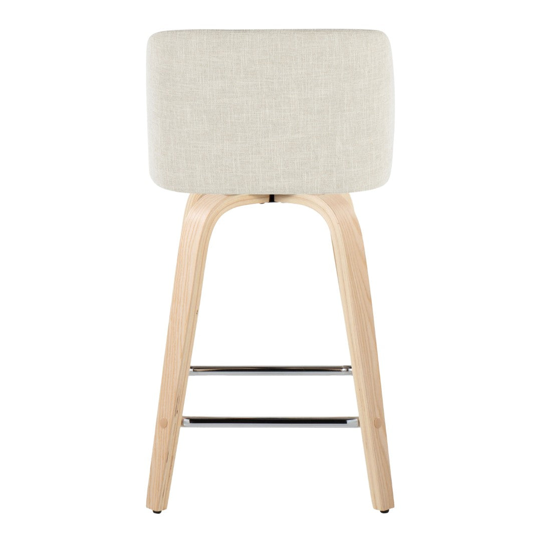 Add contemporary warmth and everyday comfort to your kitchen or bar with this pair of Toriano counter stools. Clean lines, a padded cream fabric seat, and natural bent-wood legs with a square chrome footrest create a versatile look that complements modern and transitional interiors. Each stool offers a 360-degree swivel for easy conversation and access, plus a supportive footrest and durable construction for regular use.