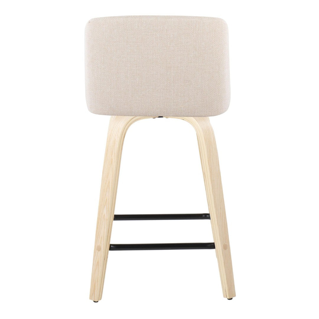 Elevate your kitchen or bar area with these modern Toriano counter stools, pairing clean contemporary lines with everyday comfort. Crafted with a padded fabric seat and supportive backrest atop natural bent-wood legs, each stool delivers a stylish swivel experience and a durable metal footrest—perfect for casual dining, entertaining, or a quick morning coffee.