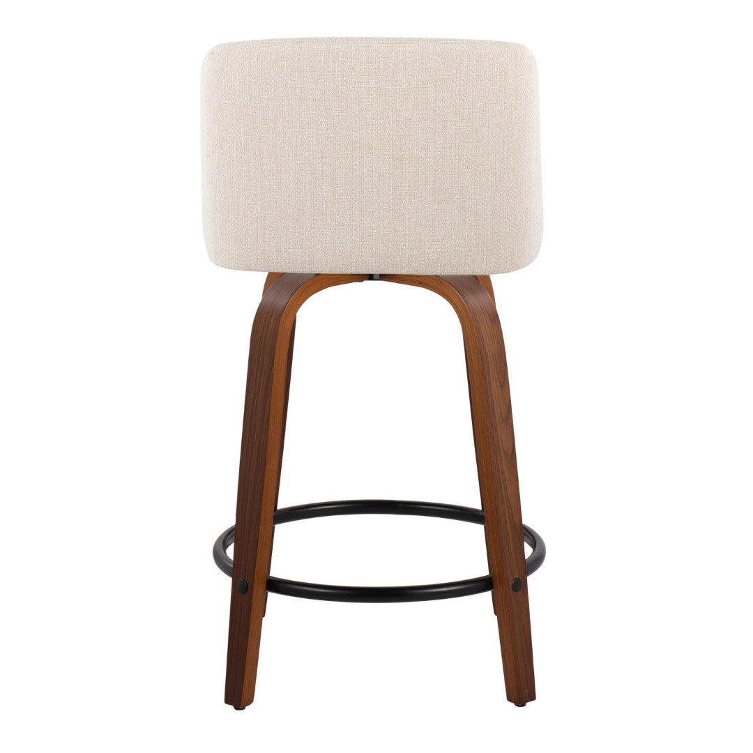 Bring Mid-Century Modern elegance and everyday comfort to your kitchen or counter area with this pair of Toriano counter stools. Each stool pairs classic bent-walnut wood legs with a plush, cream fabric seat and a convenient 360° swivel, delivering both style and functionality for casual dining or breakfast nooks.