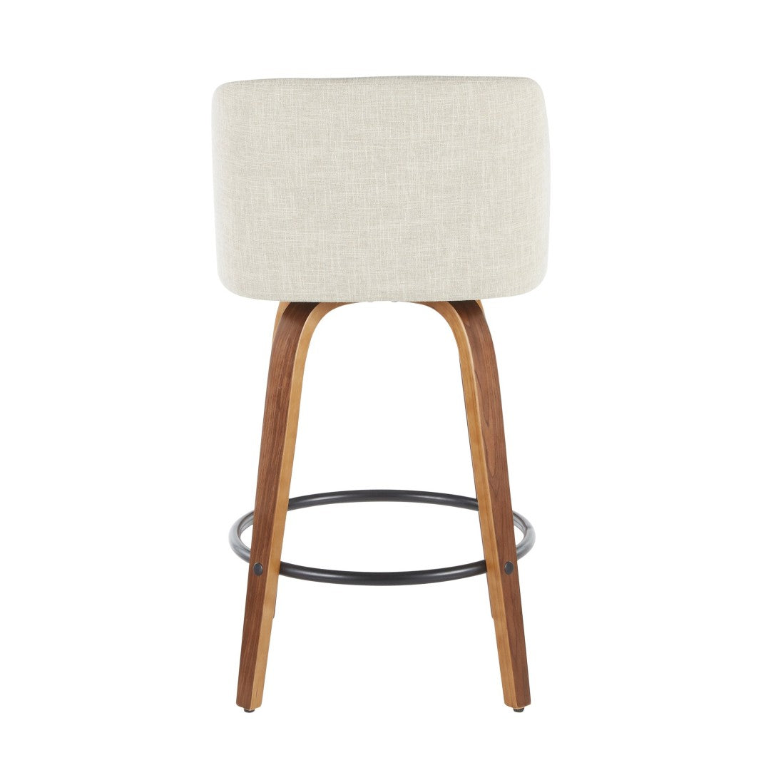 Brighten your kitchen or bar area with the Toriano Mid-Century Modern Counter Stool — a refined blend of classic mid-century lines and everyday comfort. Upholstered in cream fabric with warm walnut-finished bent wood legs, this fixed-height stool offers a cozy padded seat and supportive back with a swivel top for easy movement. Ideal for modern, transitional, or retro-inspired spaces, the Toriano brings understated elegance and practical durability to your counter seating.