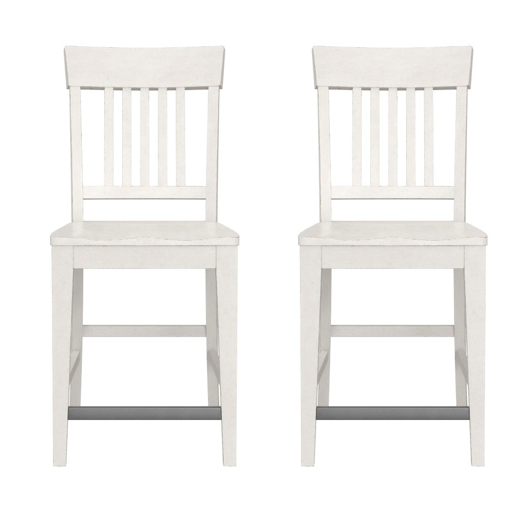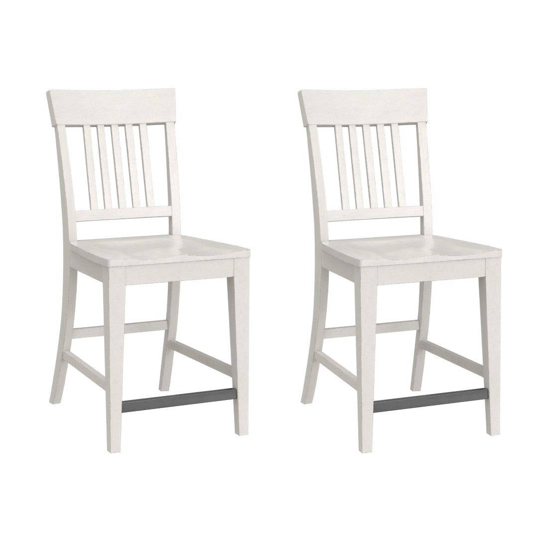 Elevate your kitchen or entertaining space with this pair of white slat-back counter stools that blend farmhouse charm with everyday practicality. Crafted from solid wood and finished in a weathered white palette, these stools provide a timeless, casual look while offering durable construction for regular use. Their clean lines and slatted back bring visual interest without overwhelming a room, making them ideal for breakfast nooks, islands, or bar-height counters.