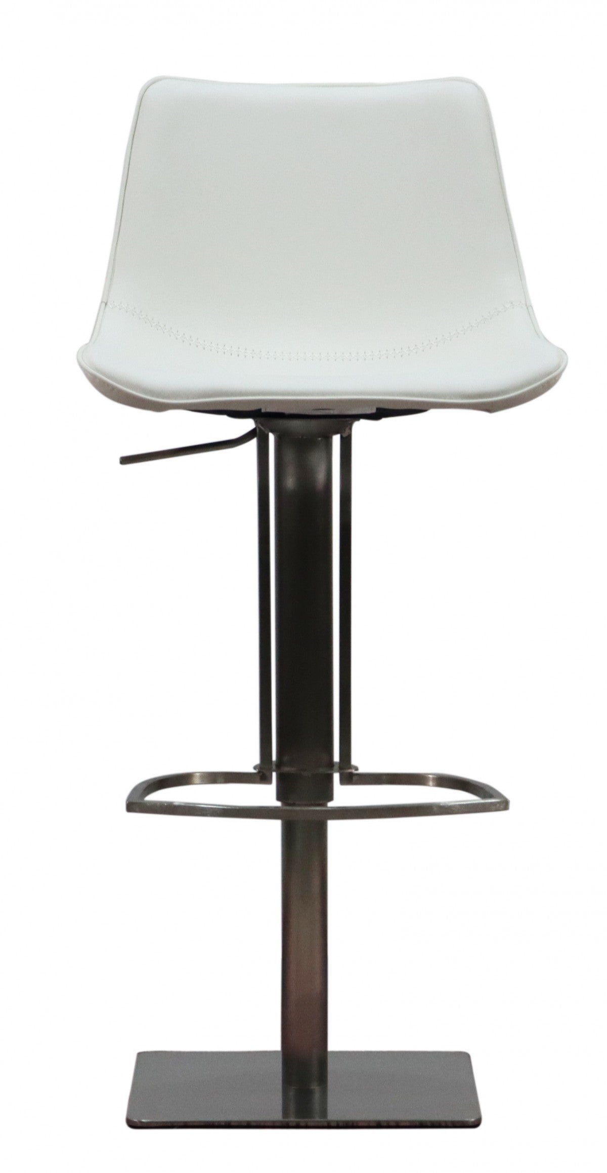 - Modern Adjustable Height Bar Stool. Gorgeous white faux leather with contrast stitching for a great look!