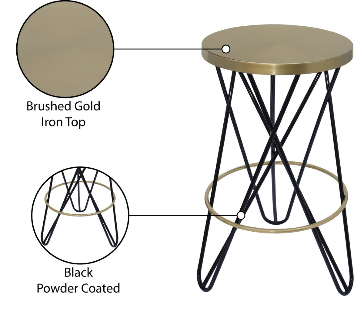 - Feature 1: Brushed Gold Iron / Black Powder Coated Counter Height Stool