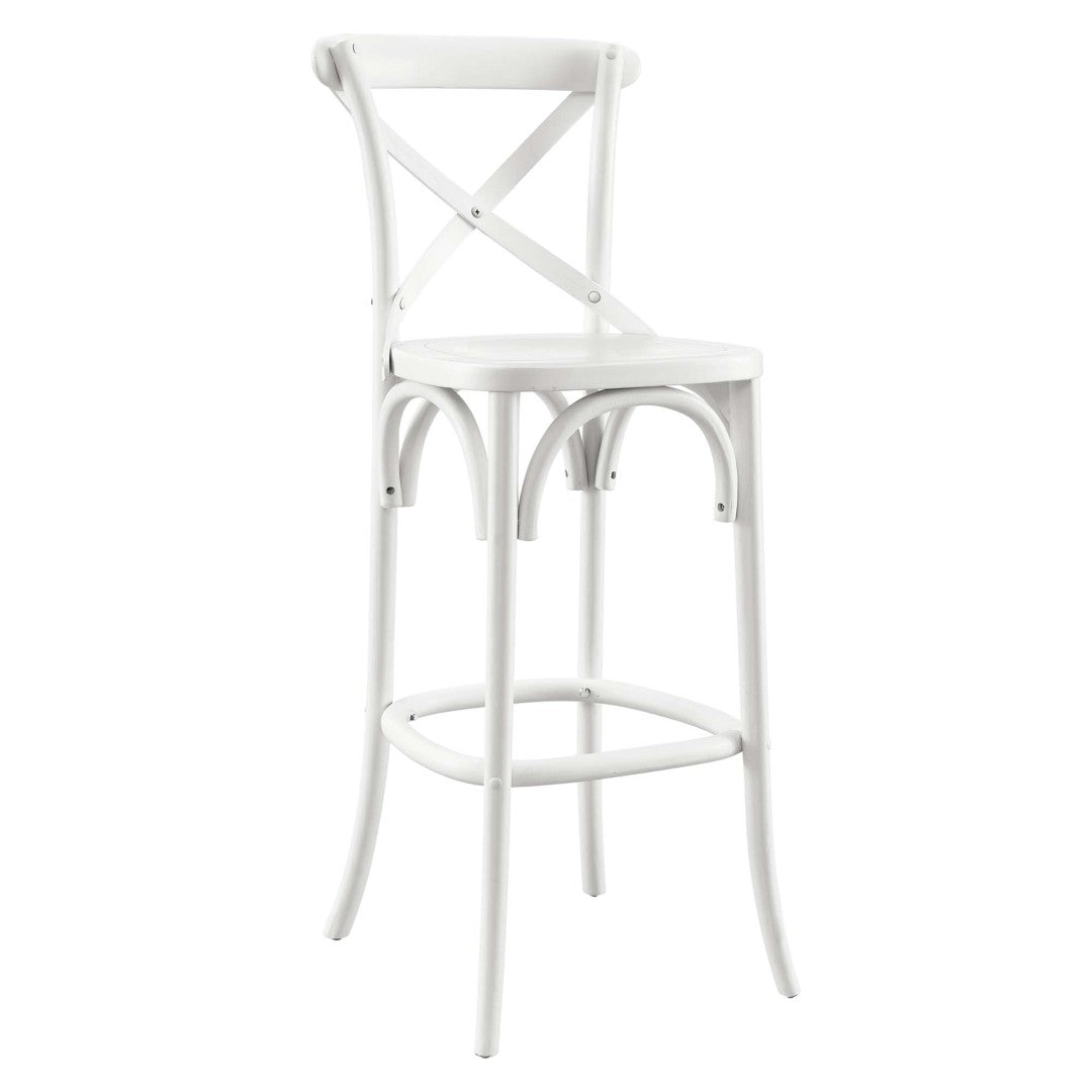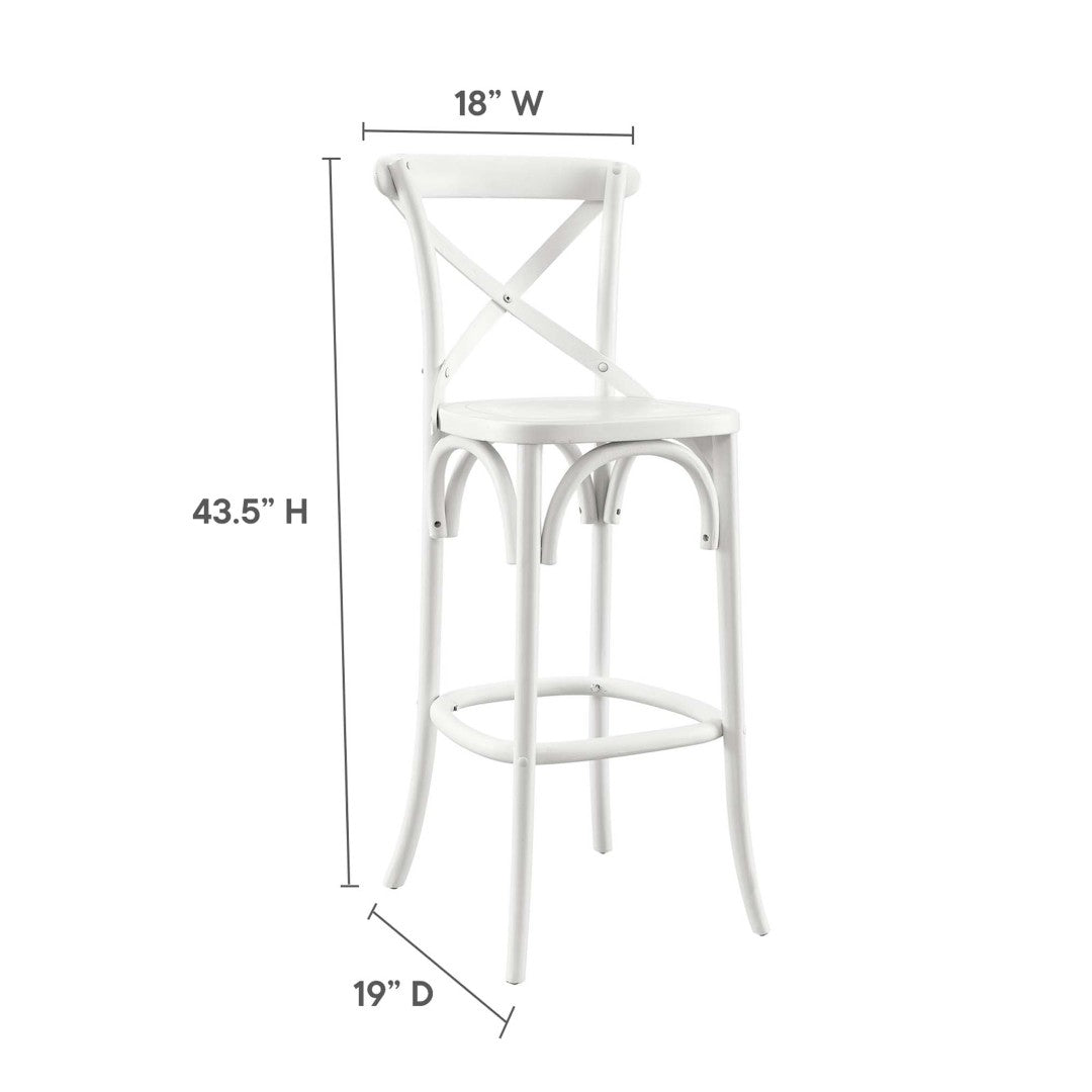 Bring farmhouse warmth and modern simplicity to your kitchen or bar area with the Gear Bar Stool by Modway. Thoughtfully designed for everyday use, this bar-height stool pairs a classic X-brace back and splayed legs with durable elm wood construction and protective non-marking foot caps, creating a comfortable, long-lasting seating solution that complements casual and contemporary interiors.