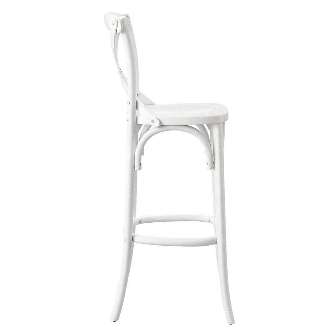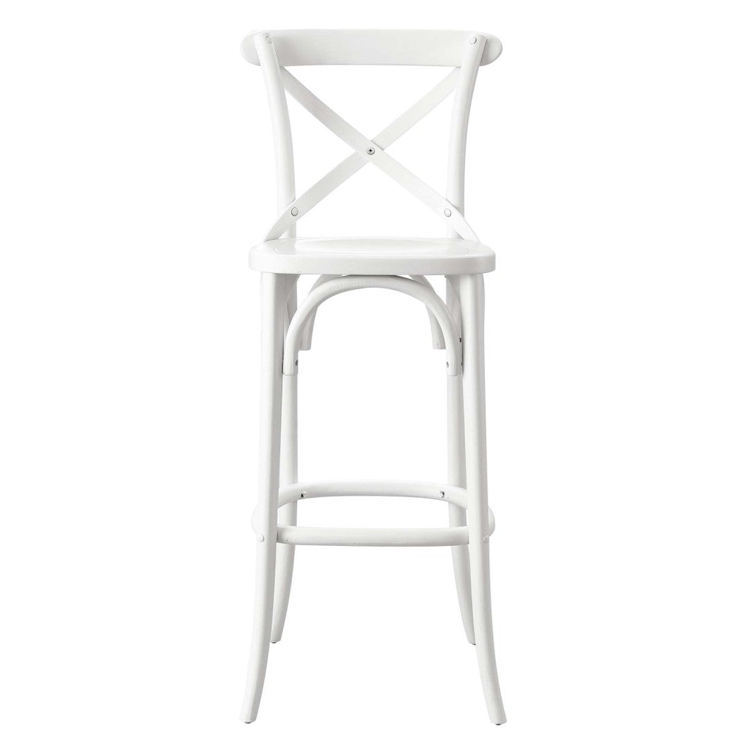 - Modern Farmhouse Bar Stool X-Brace Back Elm Wood Construction Non-Marking Foot Caps Weight Capacity: 330 lbs.