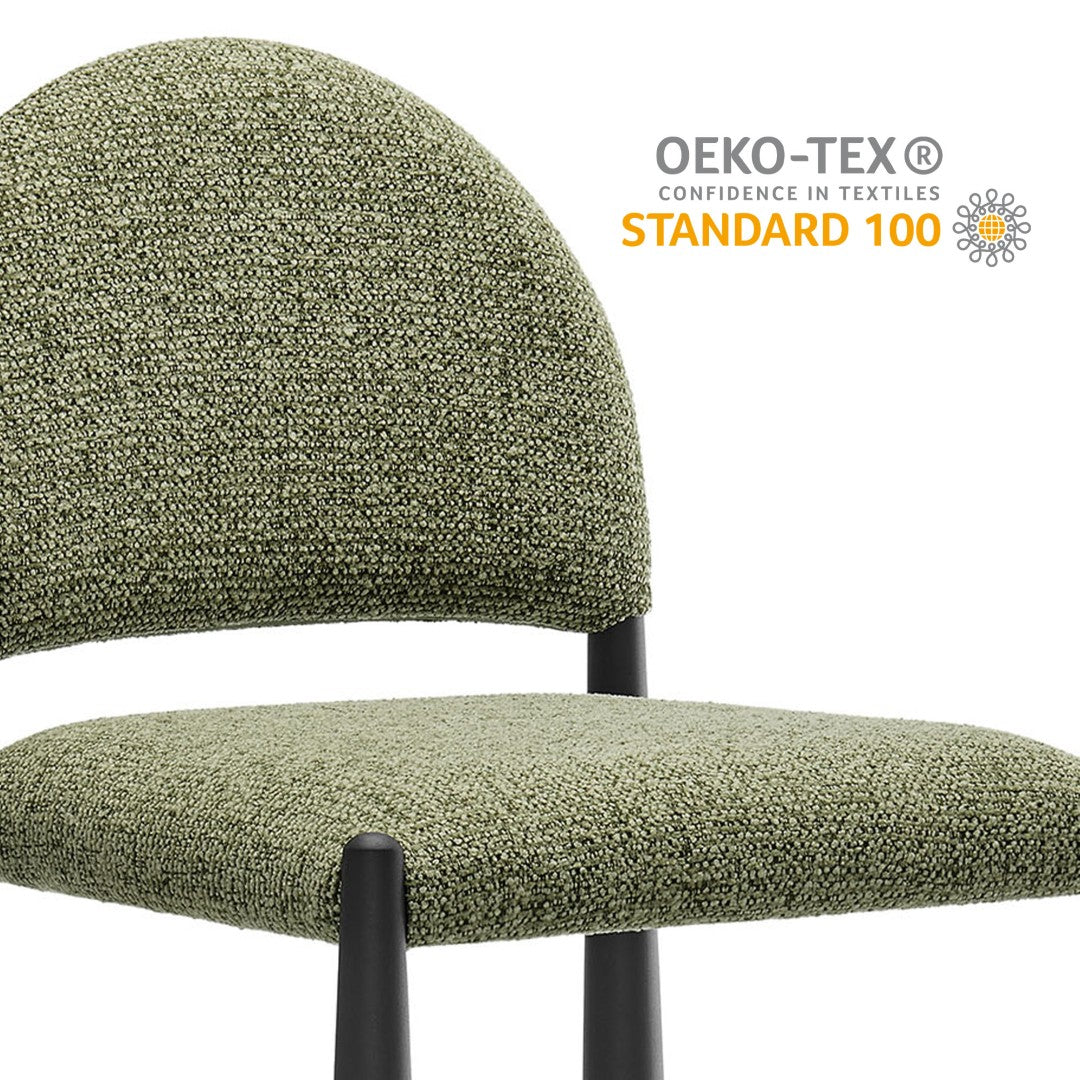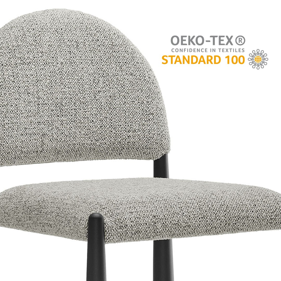 Elevate your kitchen island, counter, or casual dining area with the Hayley Upholstered Fabric Counter Stool — a refined blend of mid-century modern design and everyday comfort. Thoughtfully upholstered in a soft, textured bouclé-style fabric that’s OEKO-TEX® STANDARD 100 Certified, Hayley delivers a cozy seating experience with a distinctive silhouette: a semi-circle backrest, square padded seat, and gracefully tapered tubular metal legs that create visual drama without sacrificing stability or function.