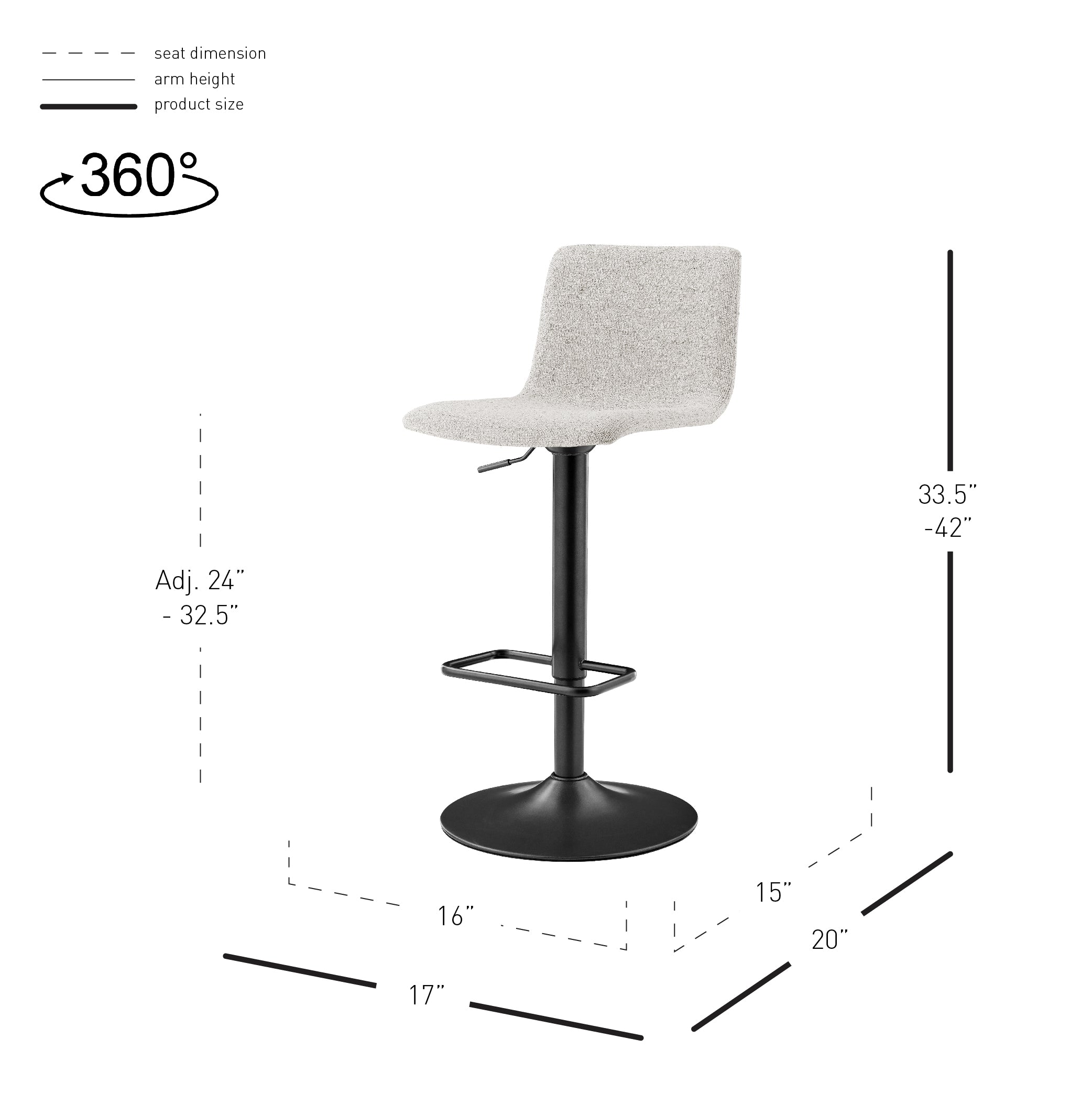 - For easy styling and dependable barstool, opt for the Bruce gaslift series. It has the support and functions that are essentials for homeowners such as 360-degree swivel functions that promotes ease of use and socialization while the lever adjusts between 24" - 32.5" for comfort. The pedestal style frame is in metallic gunmetal powder coated steel for safety and stability.