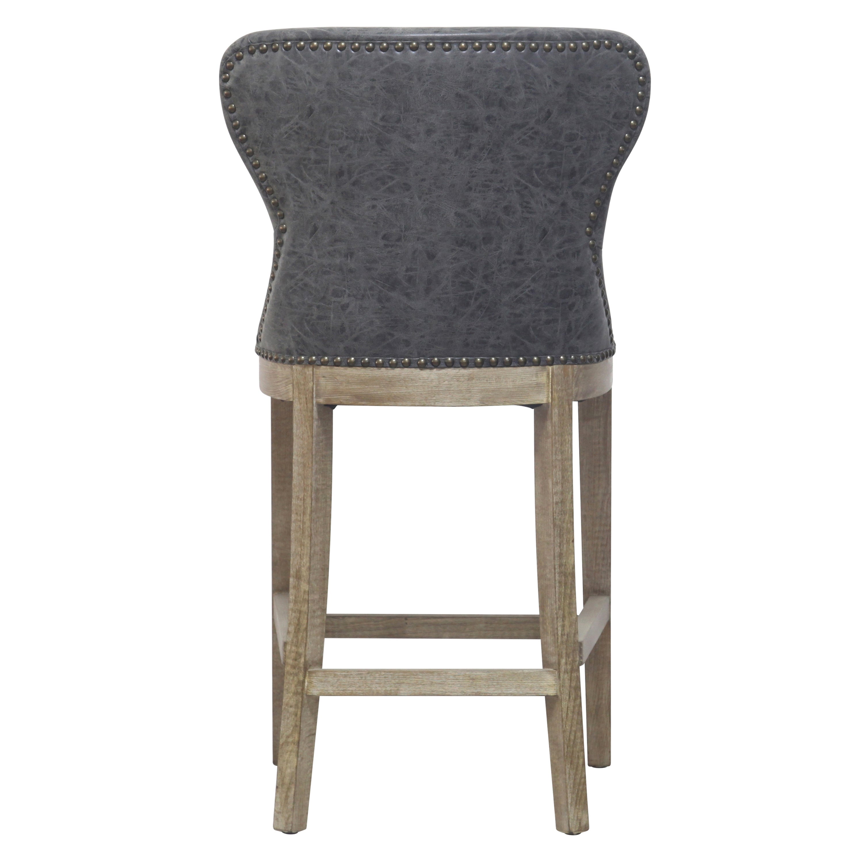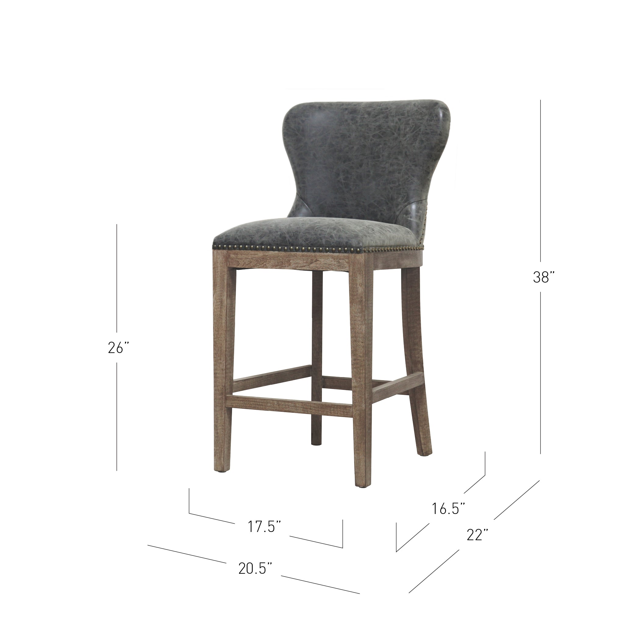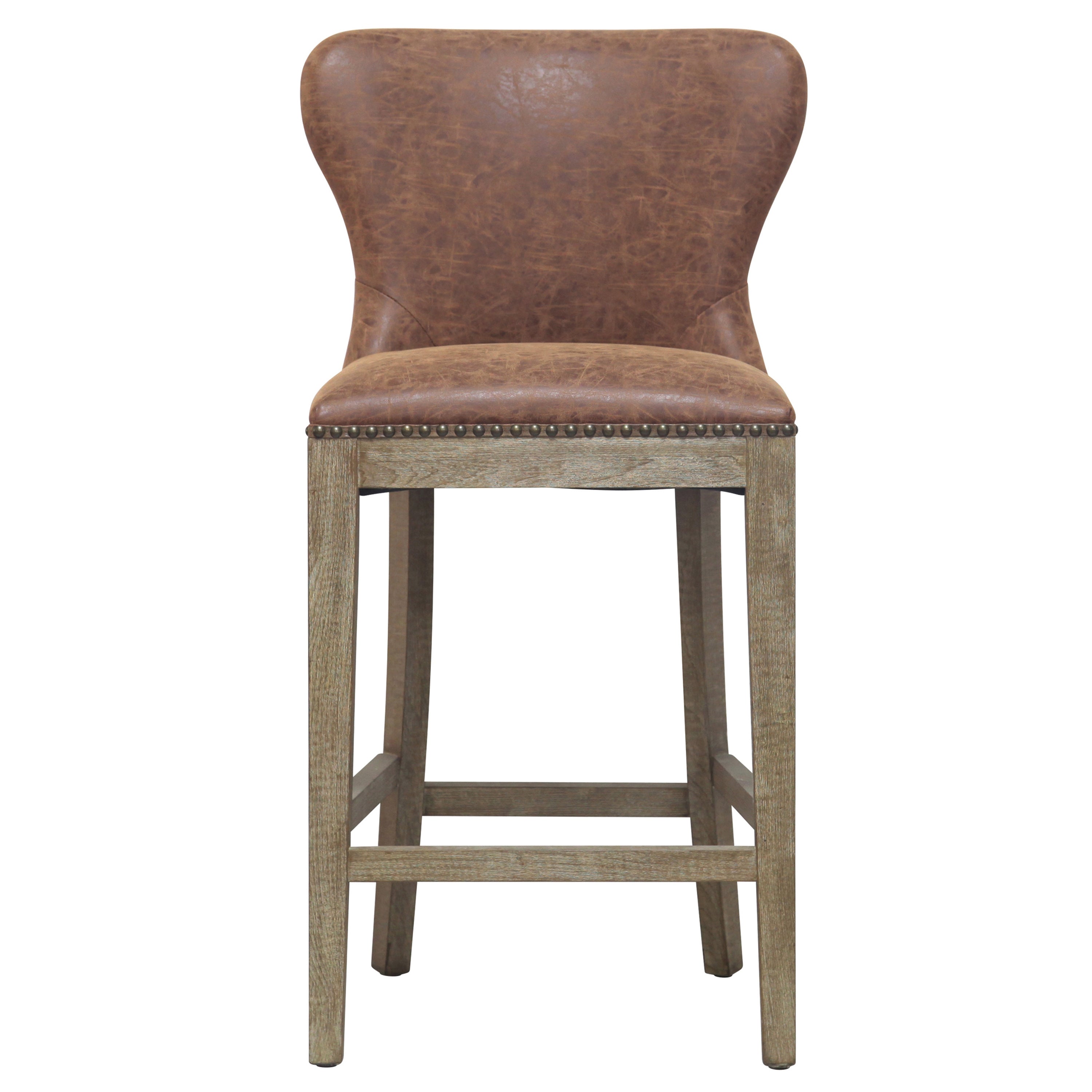- Feature 1: TRANSITIONAL TO MODERN FARMHOUSE - Wing back style 26" height counter stool featuring Nubuck Chocolate faux leather upholstery with nailheads trim, foot rest bar for stability and rubber feet for anti-slip and scratch prevention.