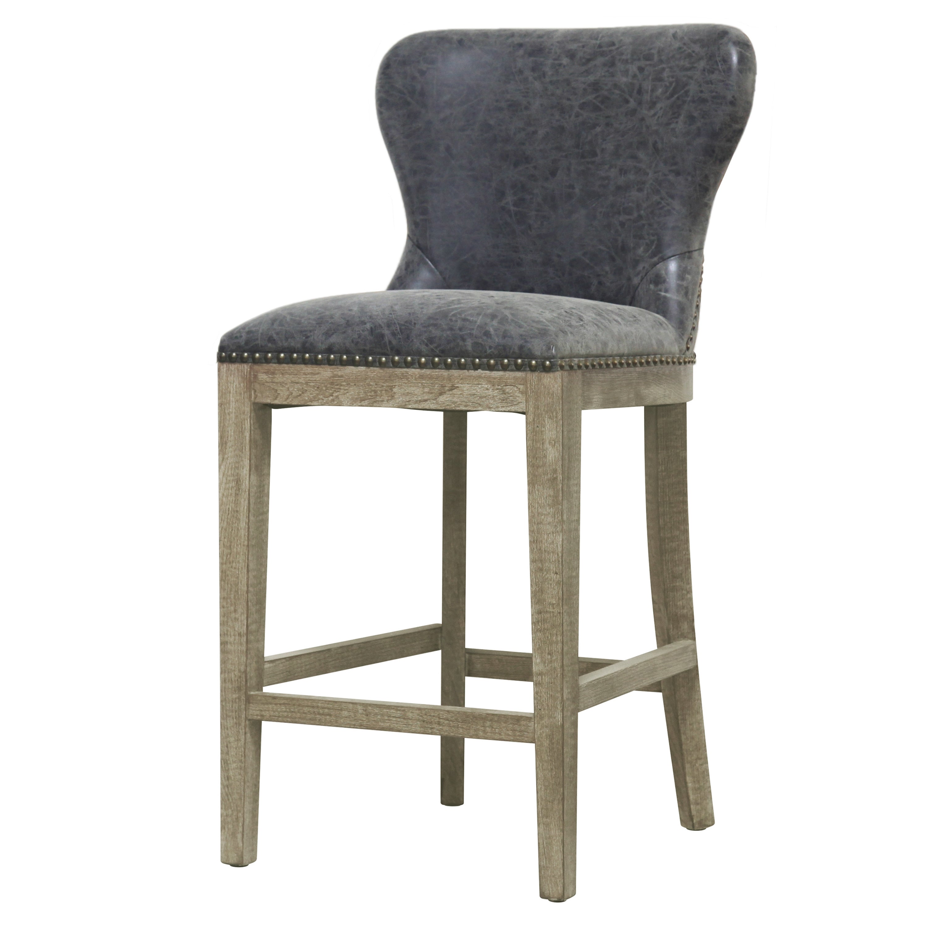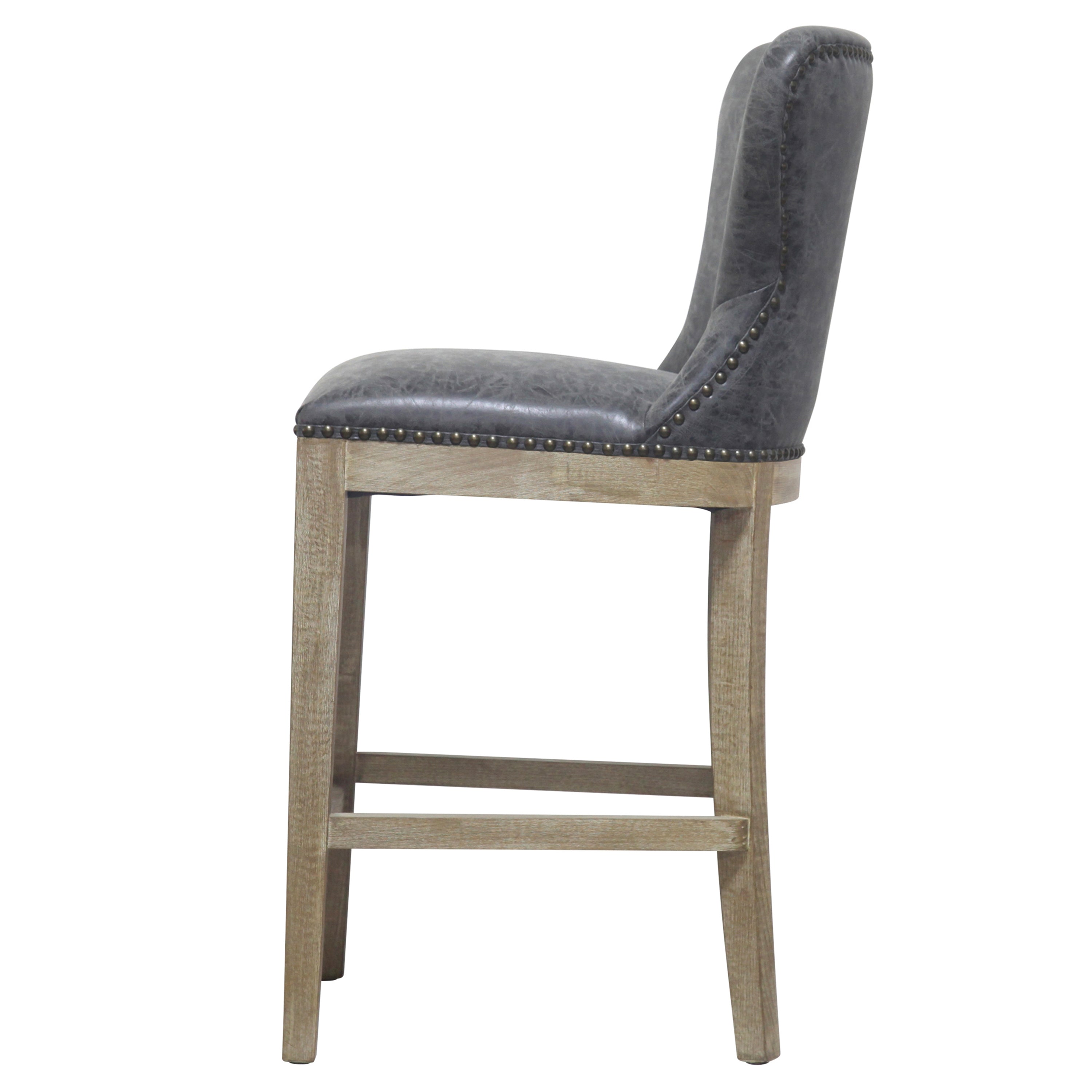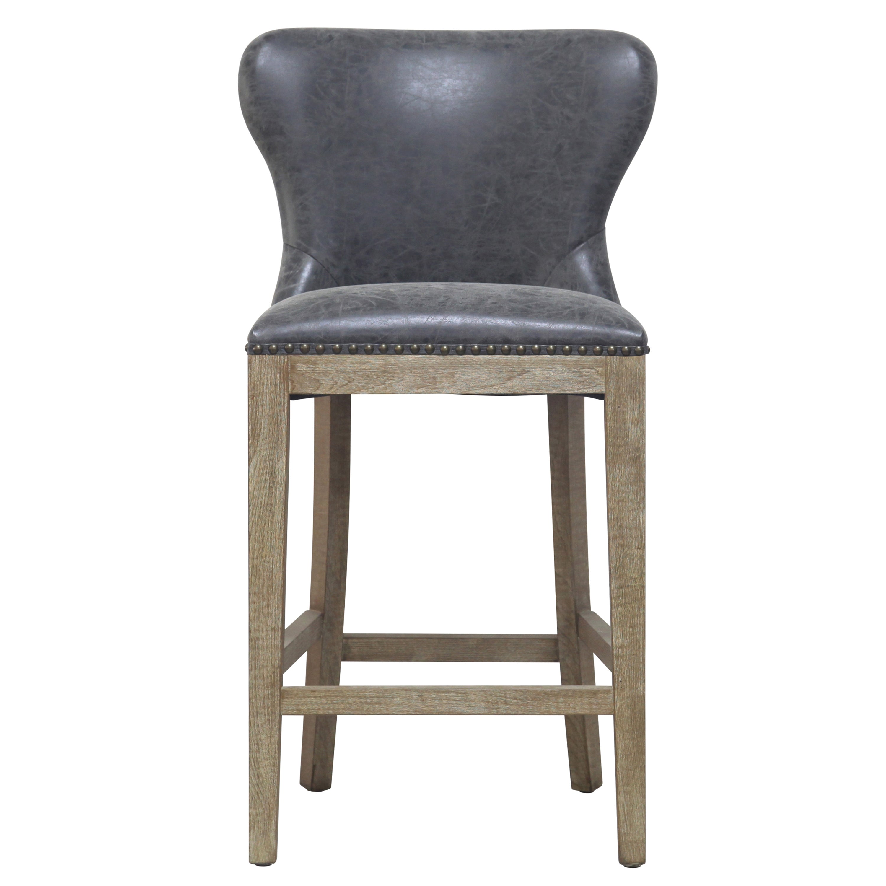 - Feature 1: TRANSITIONAL TO MODERN FARMHOUSE - Wing back style 26" height counter stool featuring Nubuck Chocolate faux leather upholstery with nailheads trim, foot rest bar for stability and rubber feet for anti-slip and scratch prevention.