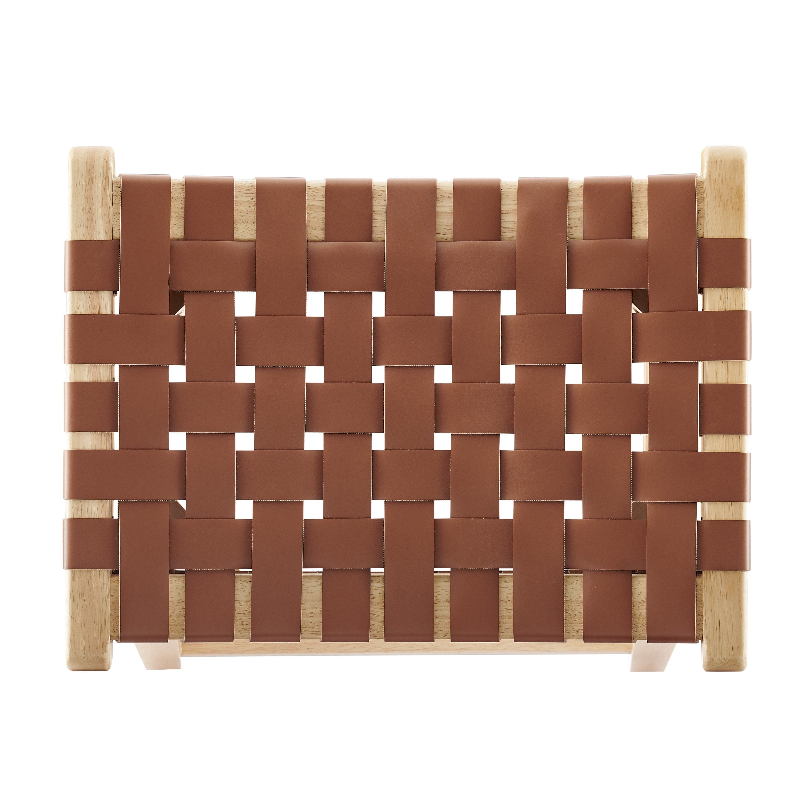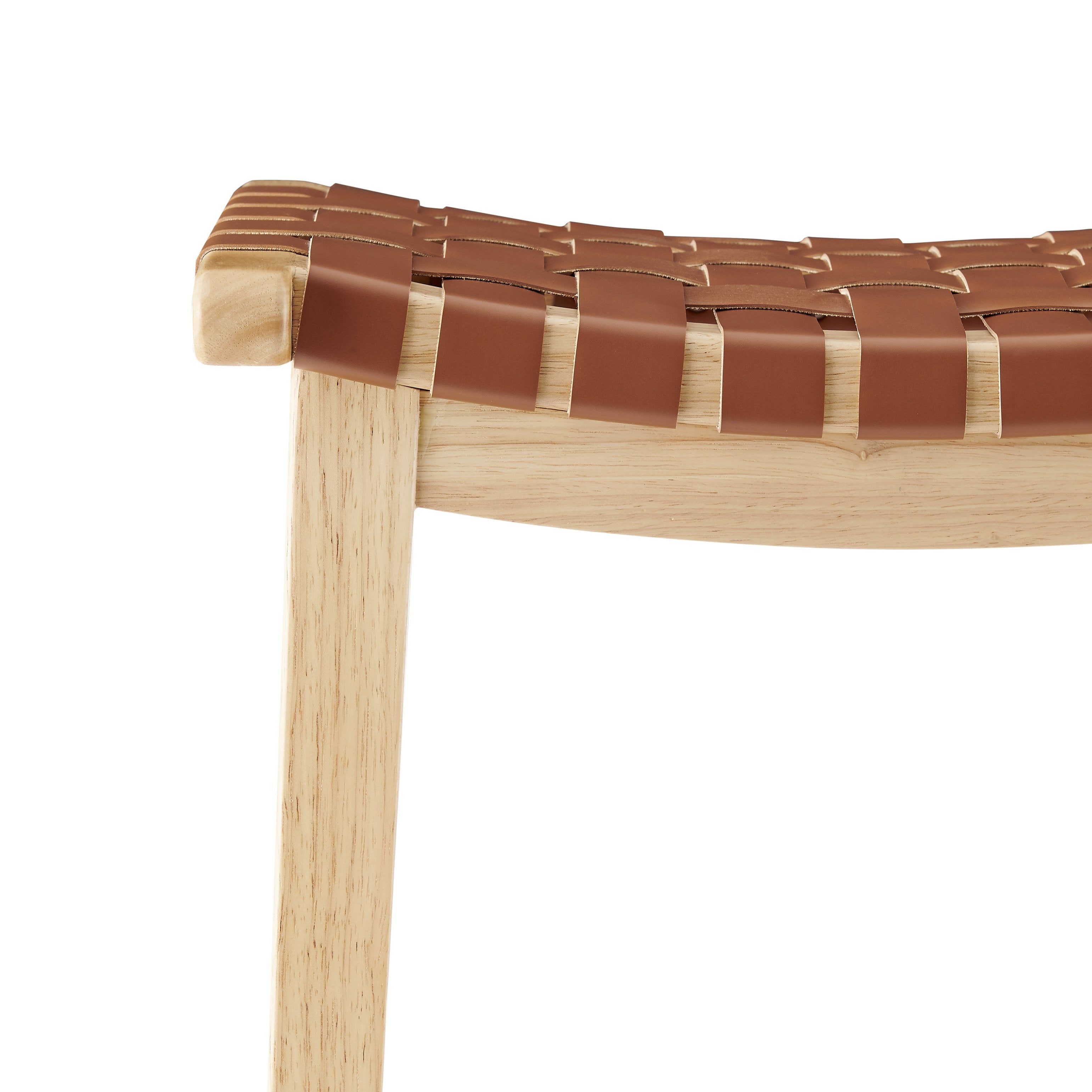 - The straps woven format in Marco stool collection gives it a new texture element and a clean, modern look. Foot stretcher and plastic glides are featured for comfort and stability. The legs are solid rubber wood.