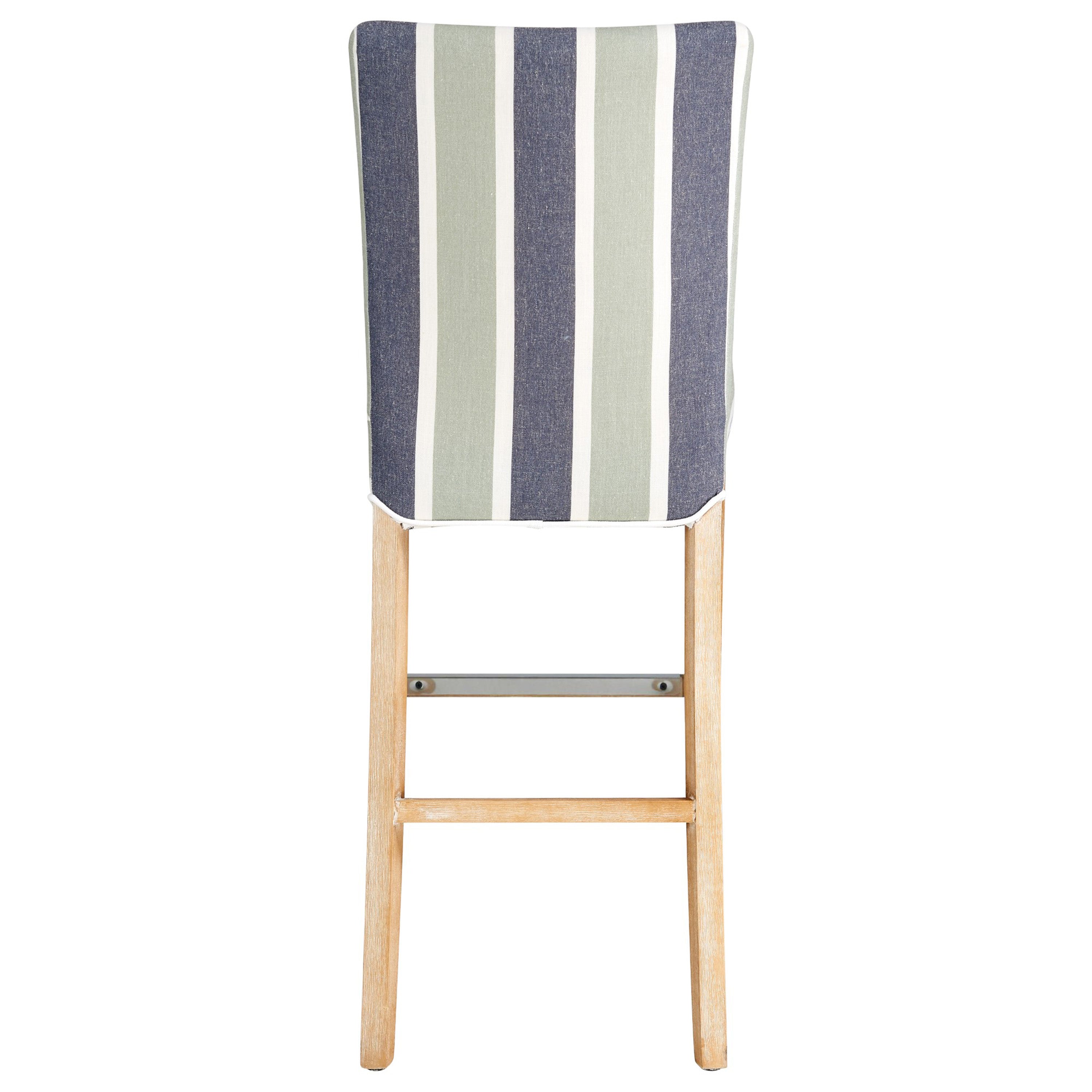 - Feature 1: Classic Parsons style 29.5" Counter Height Stool is a nice complementary for the dining room. Featuring high back in contrasting Blue and Navy stripes pattern on lightly distressed natural wood legs, this chair provides a clean and contemporary style. Looks great in a farmhouse or coastal modern theme interiors.