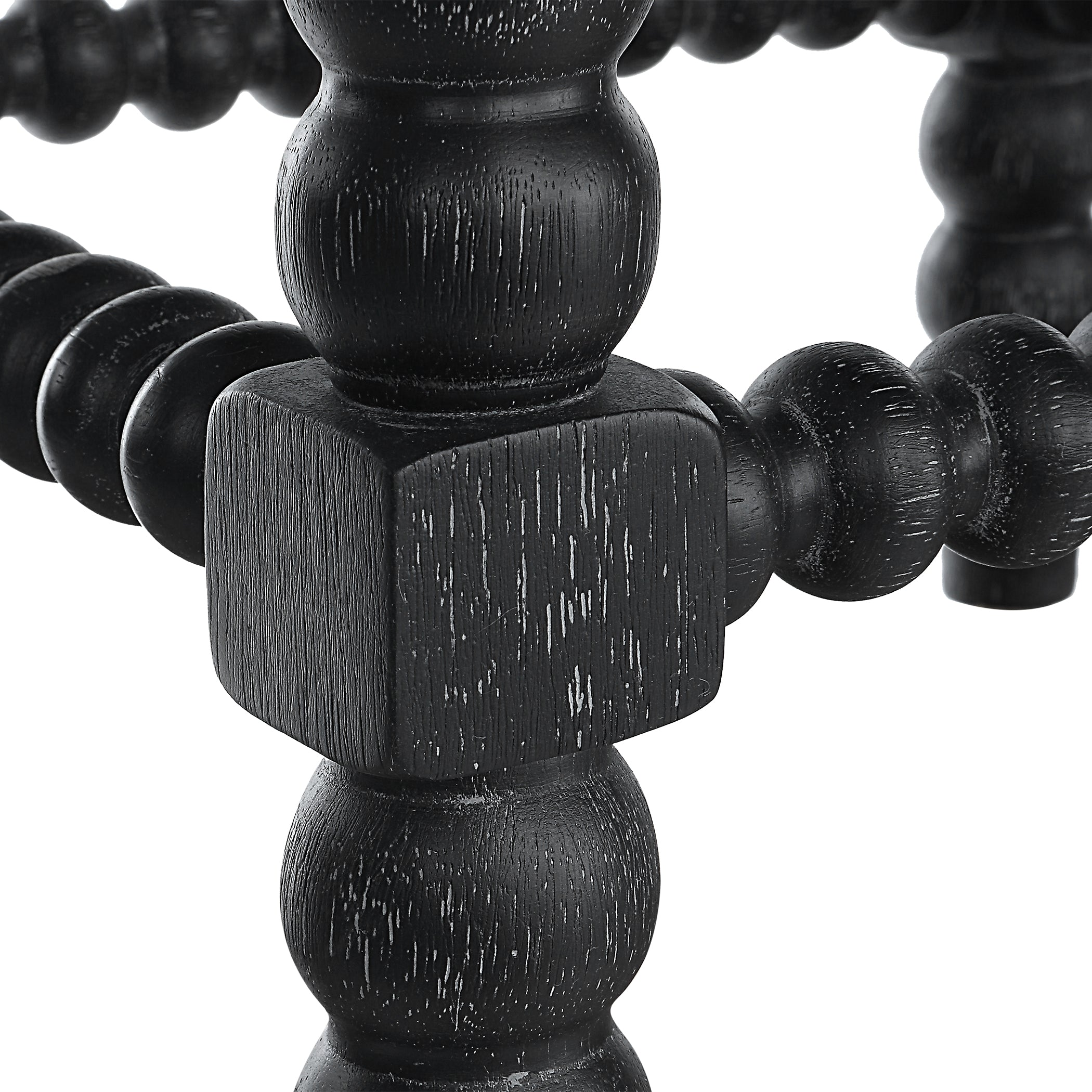 - Finish/Frame Description: A Stylish And Classic Counter Stool Featuring Spindle Turned Legs And Carved Trim Finished In A Stylish Black Ceruse Stain. Plush Seat Is Tailored In A Crisp White Performance Fabric. Seat Height Is 26".