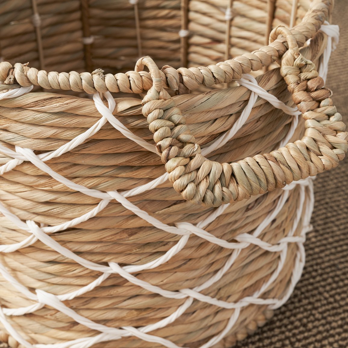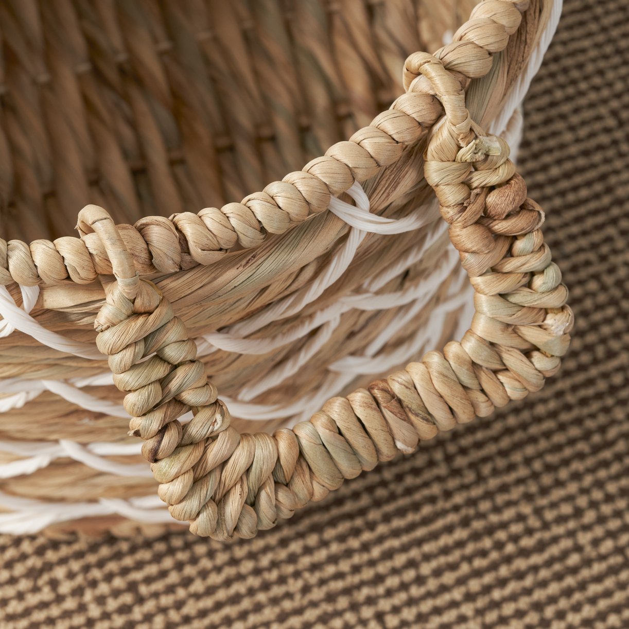 Bring natural warmth and organized function to any room with this handwoven water hyacinth seagrass basket. Its round silhouette and sturdy handles make it a stylish, practical solution for storing clothes, towels, toys, magazines, and more—while the tactile woven texture complements coastal, rustic, and contemporary decor.