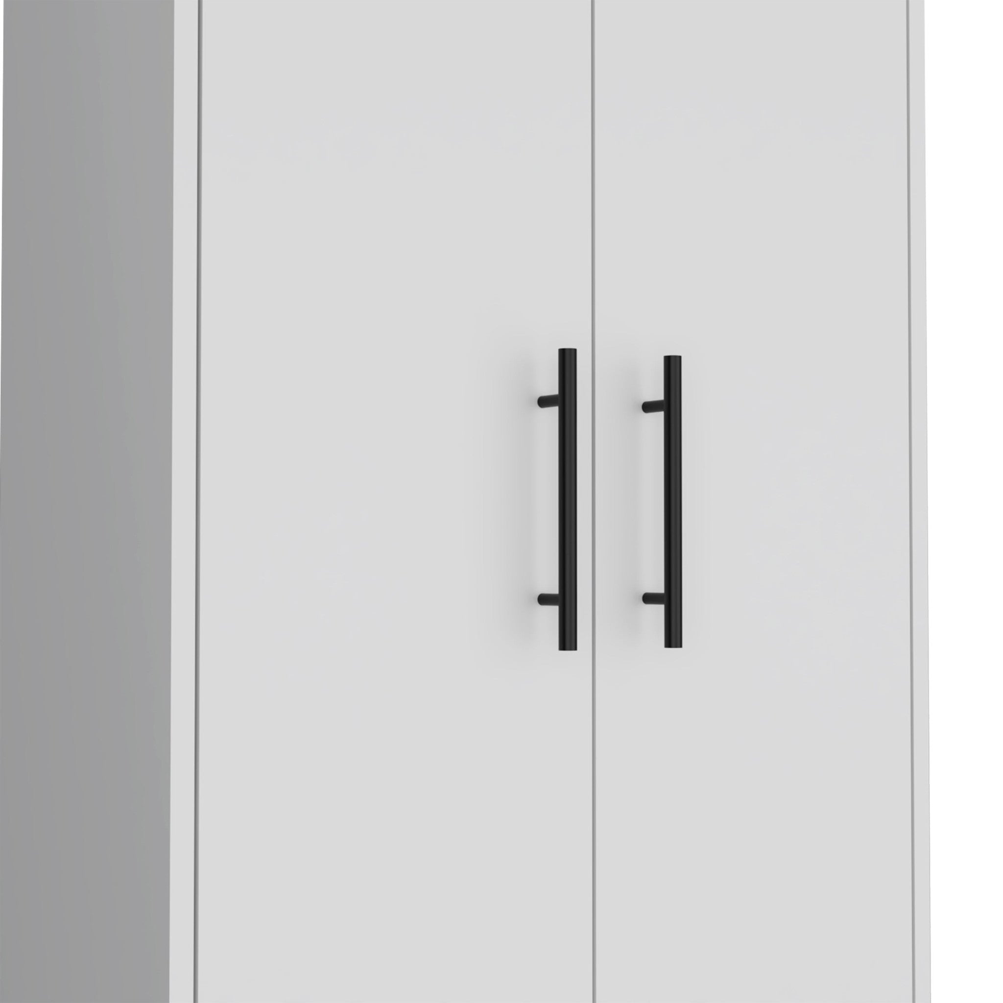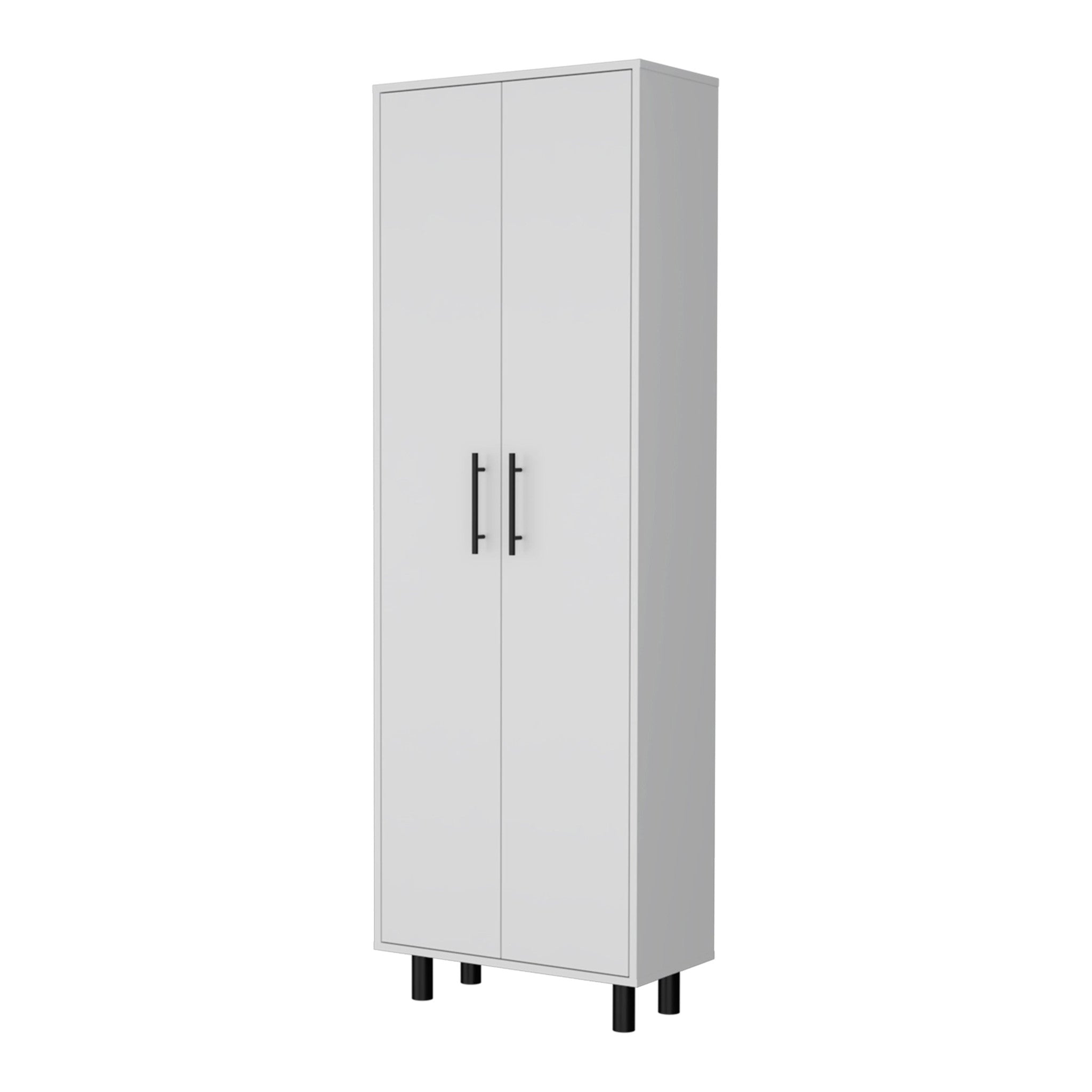 - Tall and narrow pantry style double door cabinet that offers lots of storage in a compact footprint.