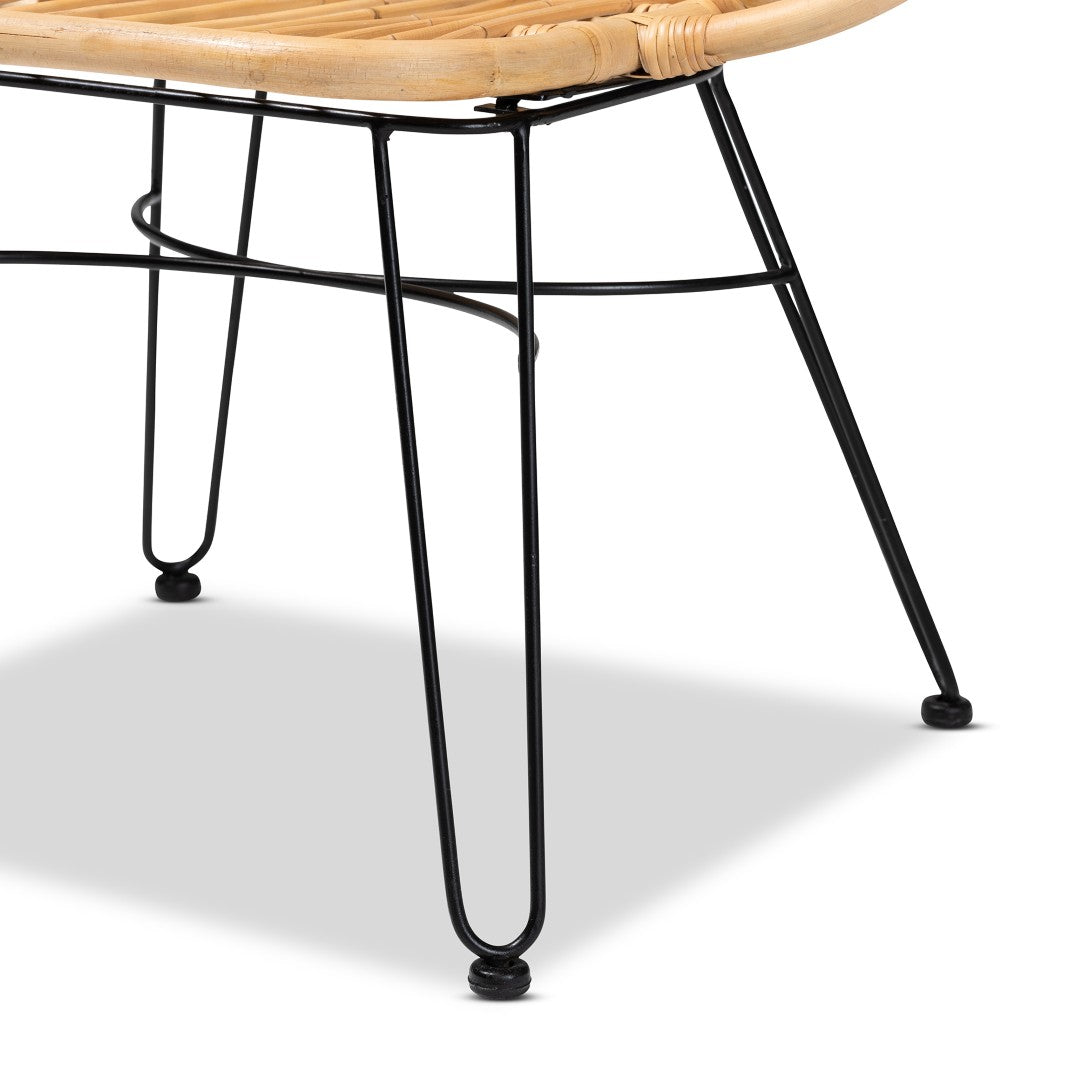 - Key materials: Natural rattan seat and back with black powder-coated metal legs for durability and contrast.