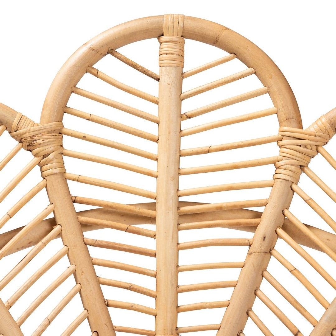 - Design details: Leaf-like, fan-shaped backrest interlaid with slim rattan rods; bamboo-style embellishments for handcrafted appeal.