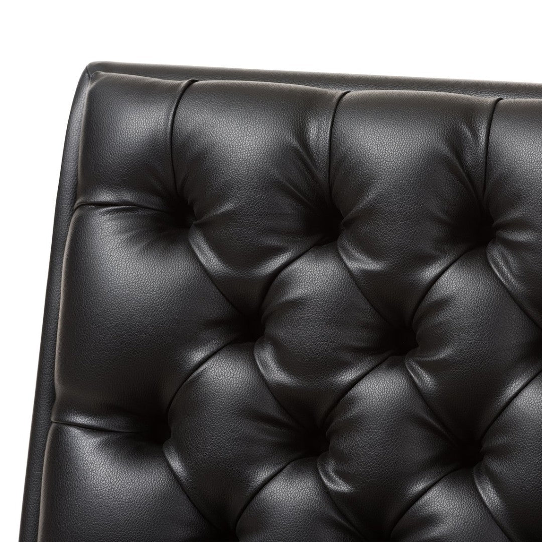 - Black faux leather upholstery for an elegant, easy-care finish