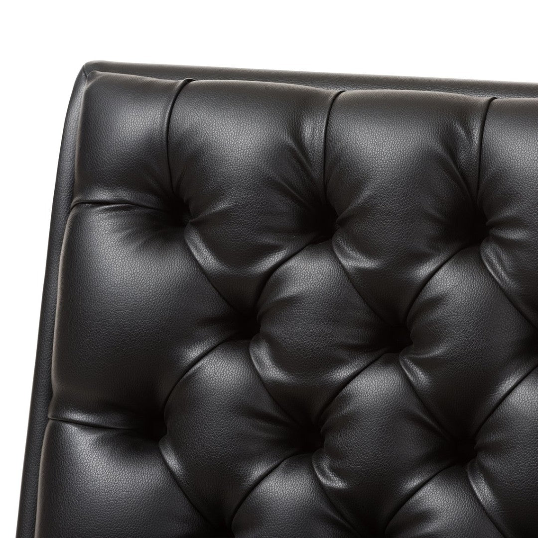 - Black faux leather upholstery