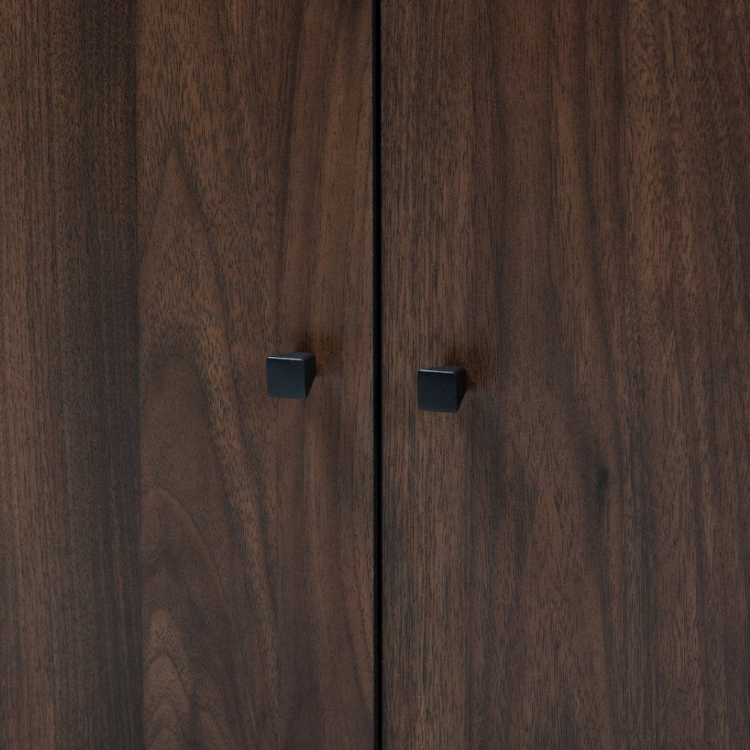 - Construction & finish: Engineered wood with walnut brown finish and dark-brown PVC door knobs and legs for a cohesive look
