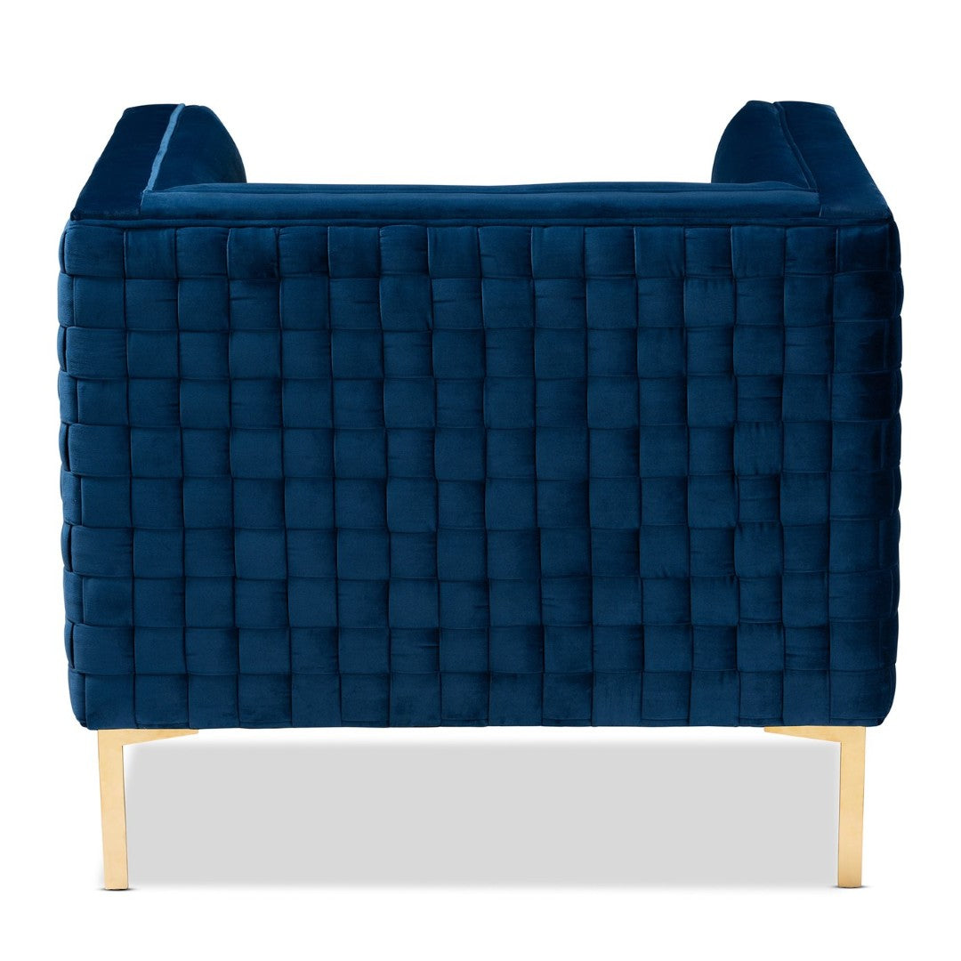 Elevate your living room, bedroom, or office with the Seraphin glam accent chair — a refined combination of luxe navy velvet, elegant channel tufting, and gold-finished legs. Thoughtfully padded for comfort and scaled for both statement and everyday use, this chair brings a polished, modern silhouette to contemporary interiors.