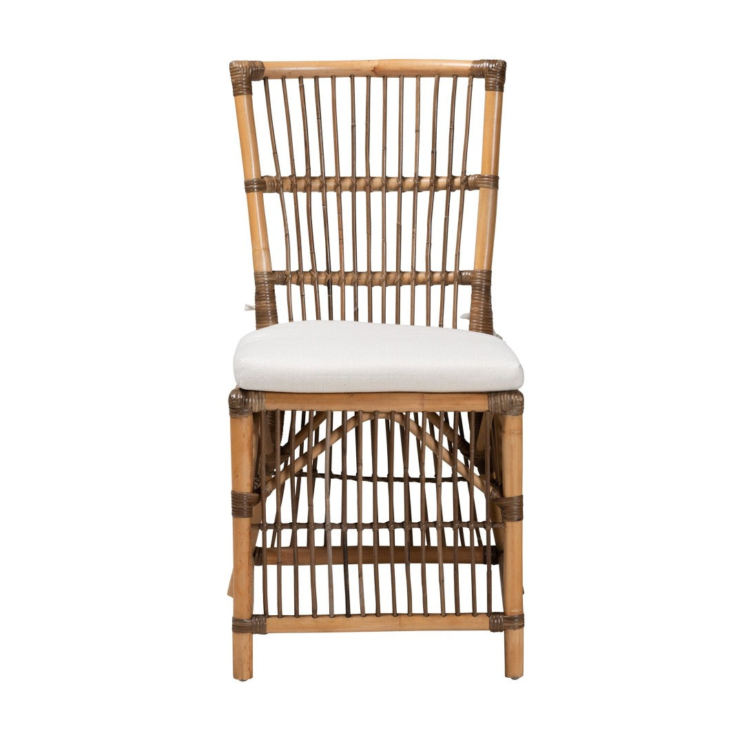 Bring relaxed, modern bohemian style to your dining space with the Kim dining chair — a handcrafted piece from Indonesia that pairs airy rattan craftsmanship with a comfortable, upholstered seat. Its gently curved backrest, flowing rattan skirt and slim angled legs create an inviting silhouette that suits casual meals, coffee breaks, or a cozy corner in your home.