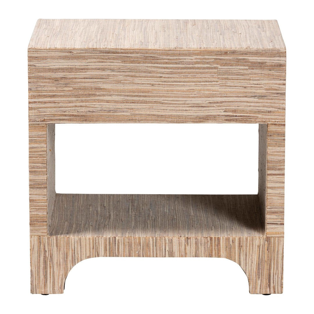 Bring relaxed, handcrafted charm to your bedroom with the Julia nightstand — a compact bohemian piece that pairs natural texture with practical storage. Meticulously woven by Indonesian artisans over a sturdy engineered wood frame, this nightstand highlights the warm, organic character of grasscloth while providing a clean, modern silhouette that complements both eclectic and contemporary interiors.
