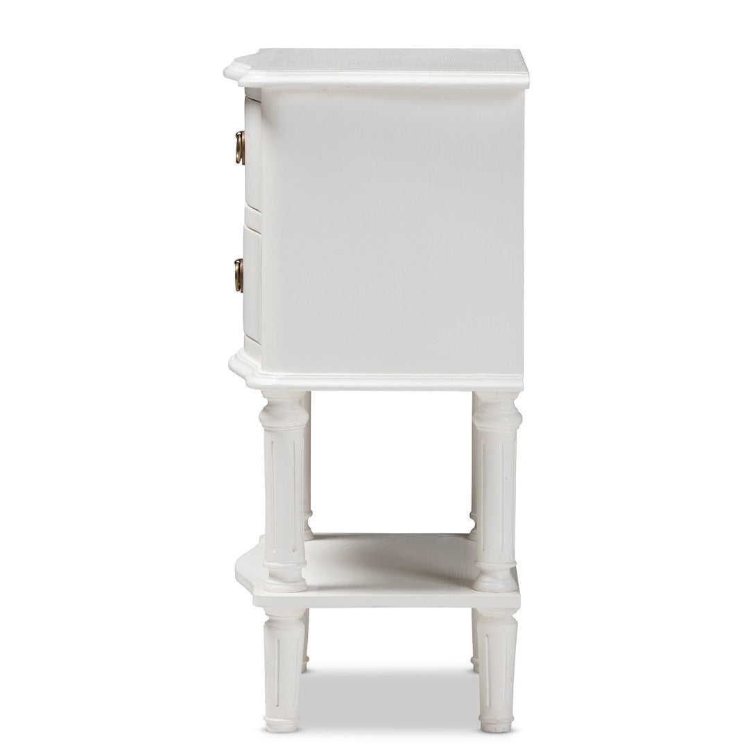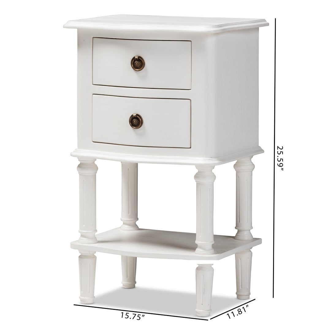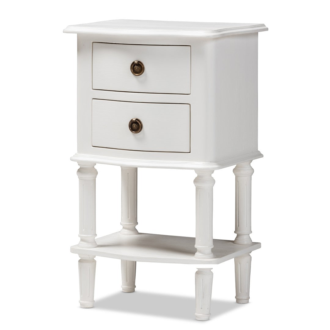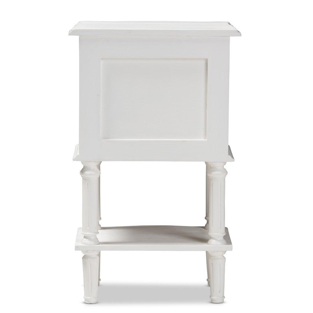 Bring classic country charm to your bedroom with the Audrey nightstand, a versatile piece that blends farmhouse warmth with clean, cottage-inspired lines. Finished in crisp white and detailed with subtle curves and ball-turned legs, this compact bedside table offers practical storage and a refined silhouette that complements French, rustic, and coastal interiors.