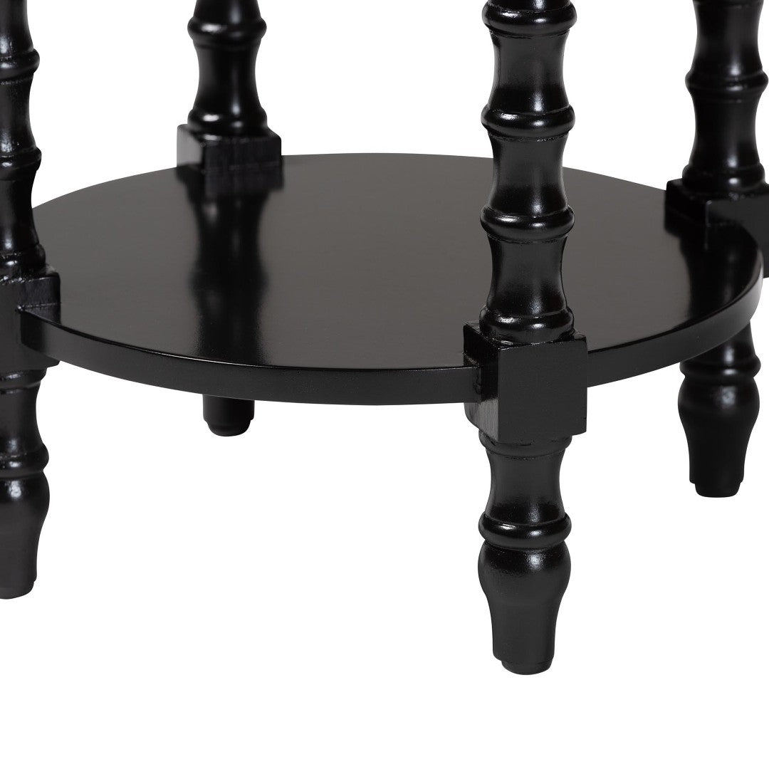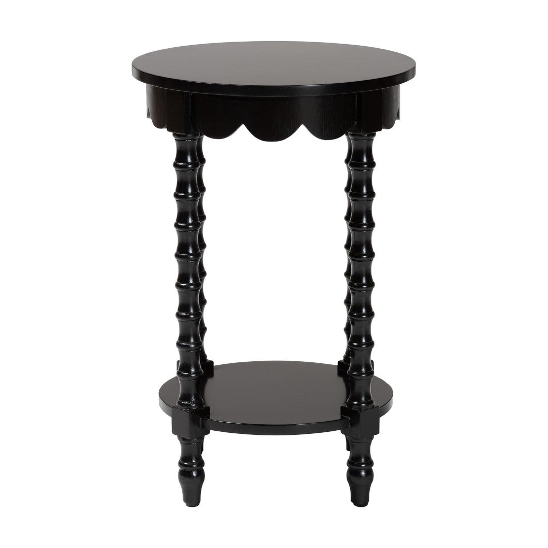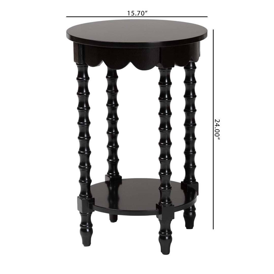 Bring mid-century charm and versatile function to your bedroom or living area with this elegantly detailed round nightstand. Handcrafted with textured, bamboo-inspired legs and a scalloped apron, it blends vintage-inspired silhouette with modern practicality—arriving fully assembled and ready to elevate your space.