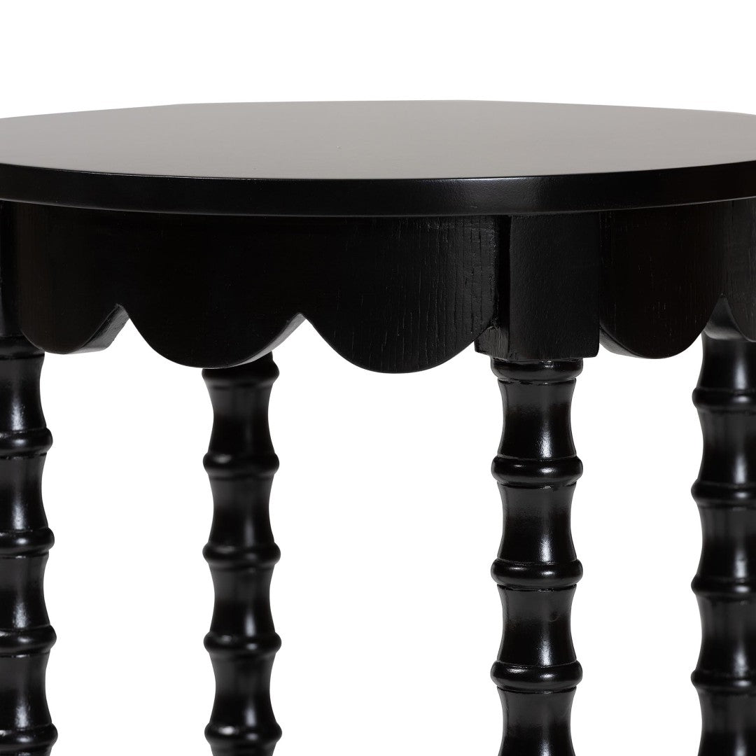 - Signature design: Round tabletop with a scalloped trim and bamboo-inspired textured posts for a refined, sculptural profile.