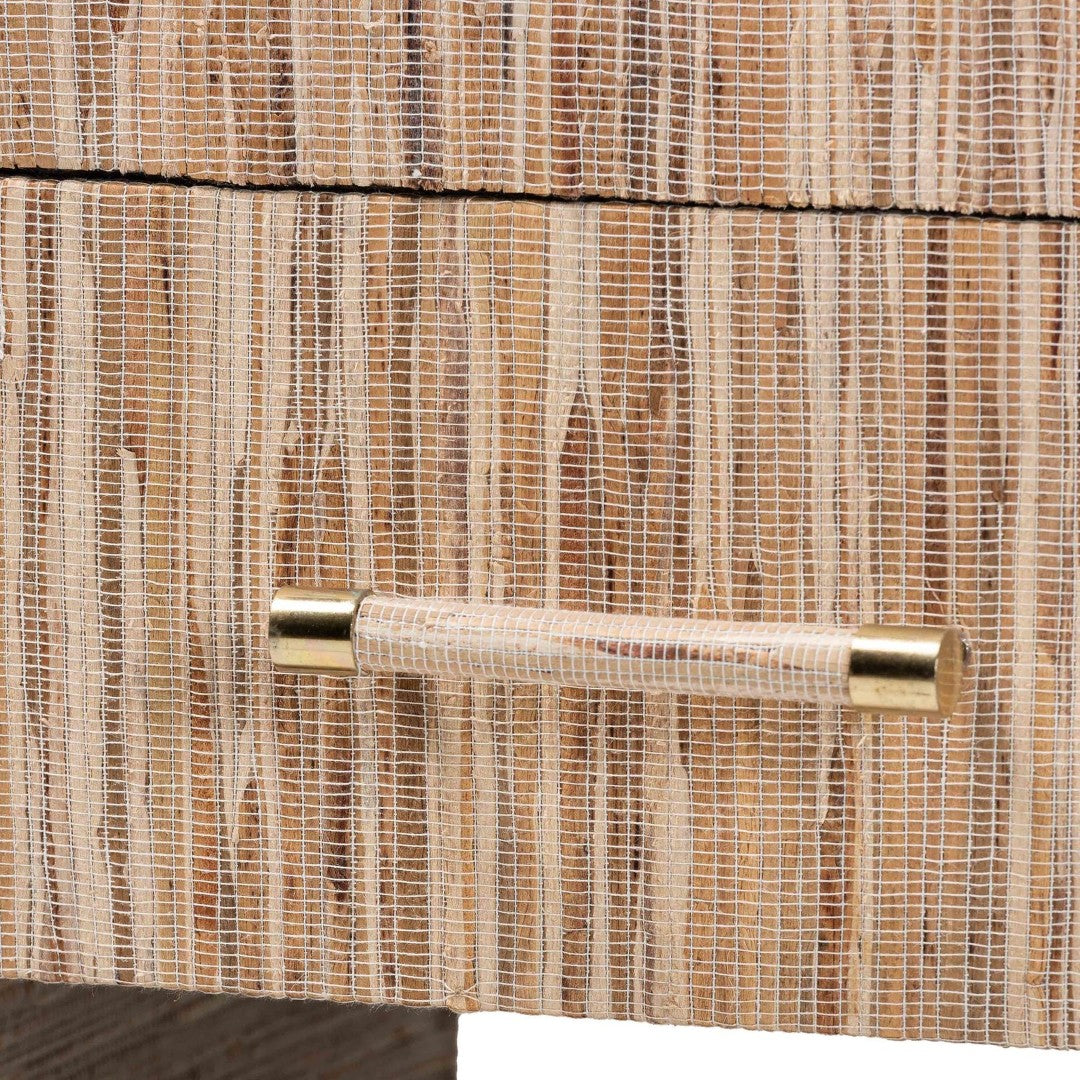 Bring organic texture and handcrafted charm to your bedside with the Callan nightstand. Handwoven natural grasscloth and a solid wood frame combine for a relaxed bohemian aesthetic that feels both curated and comfortable. Thoughtfully proportioned storage and an eye-catching metal-capped handle make this piece as practical as it is photogenic—arriving fully assembled for immediate use.