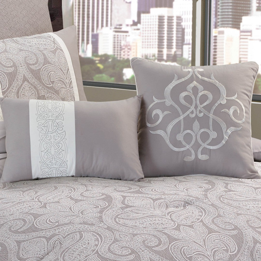 Transform your bedroom into a refined retreat with this Winthrop 10-piece king comforter set. Designed for sophisticated simplicity, the muted grey damask pattern and woven jacquard texture add depth and elegance while the polyester construction ensures easy care and lasting comfort—ideal for a master suite or guest room.