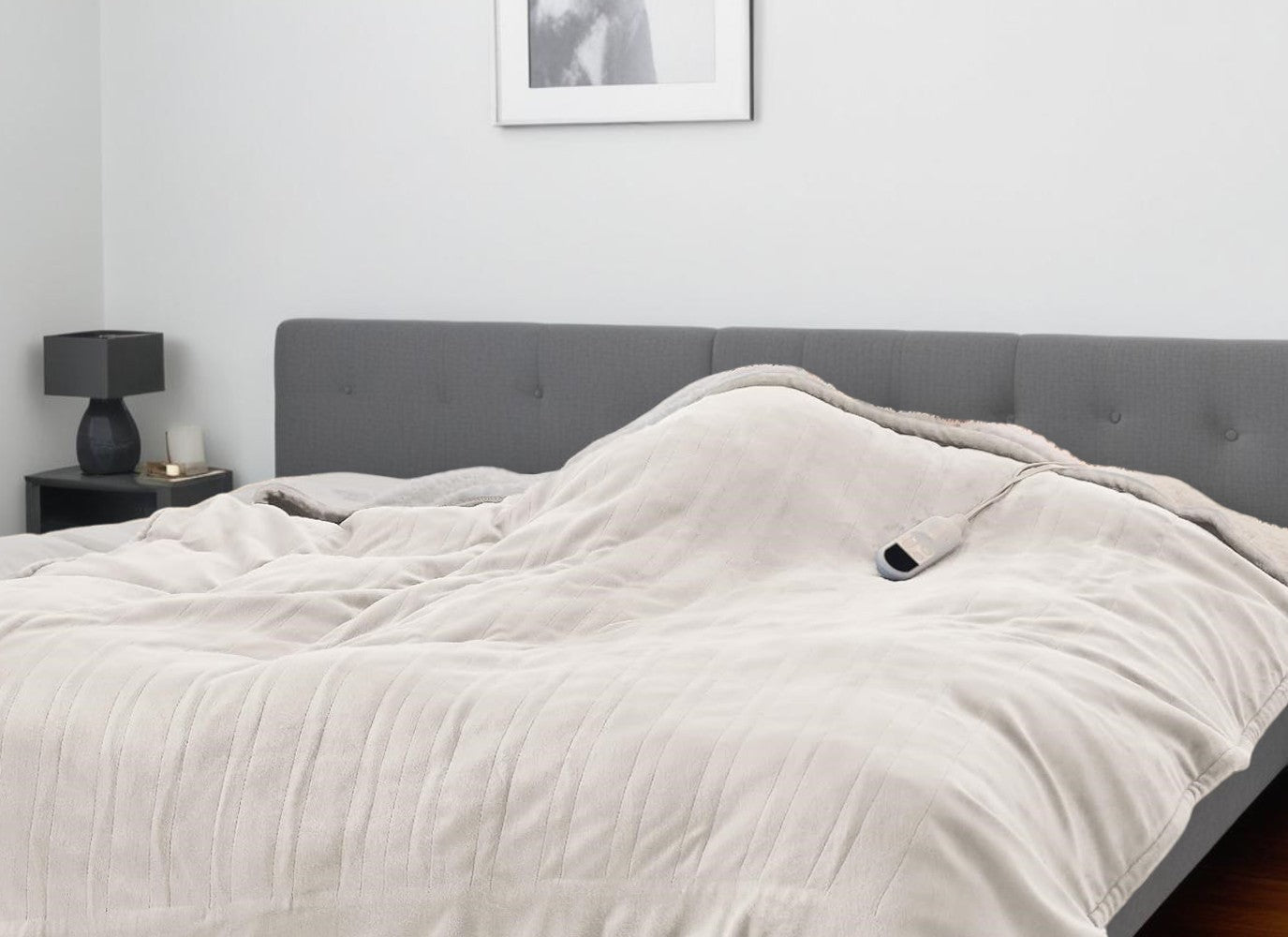 - This heated electric blanket offers instant warmth in colder temperatures.
