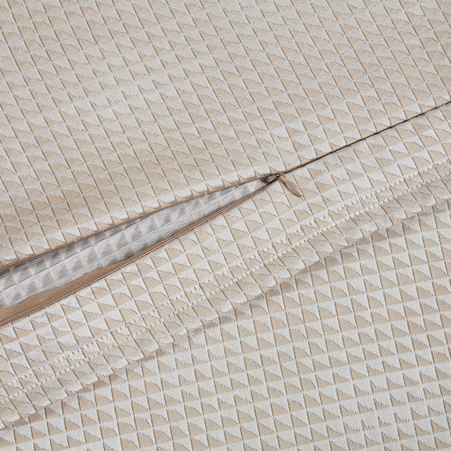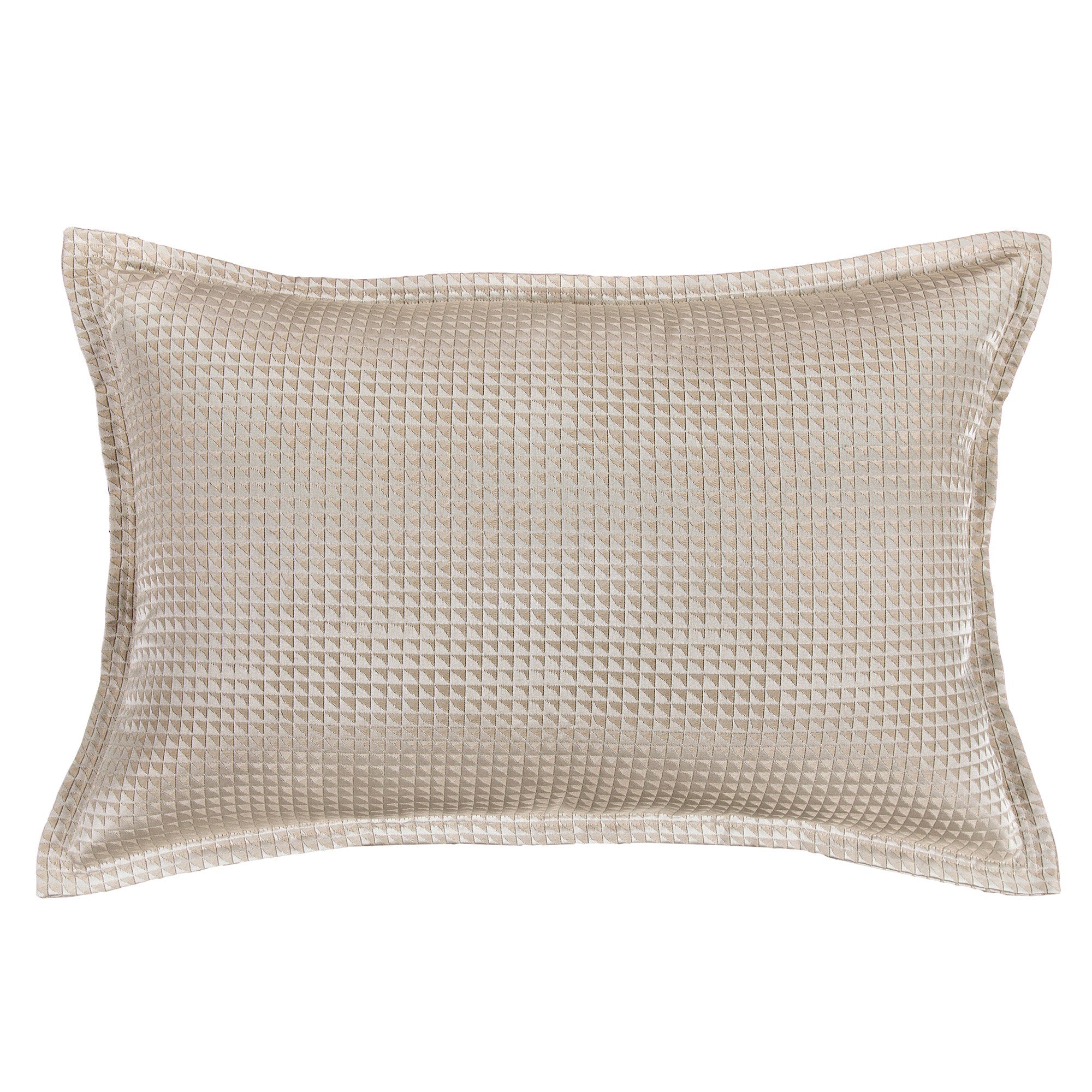 Elevate your home decor with the Sydney Jacquard Lumbar Pillow, a stunning piece that seamlessly blends comfort and style. Inspired by the intricate beauty of architectural designs, this pillow features a dynamic pattern of flowing deconstructed triangles. The luxurious interplay of lustrous silvers and subtle gold yarns creates an eye-catching jacquard fabric that adds sophistication to any space. Perfectly designed for tailored support, this lumbar pillow not only enhances your lower back comfort but also complements the High Shine Satin Quilt in champagne, making it a versatile addition to your bedding ensemble.
