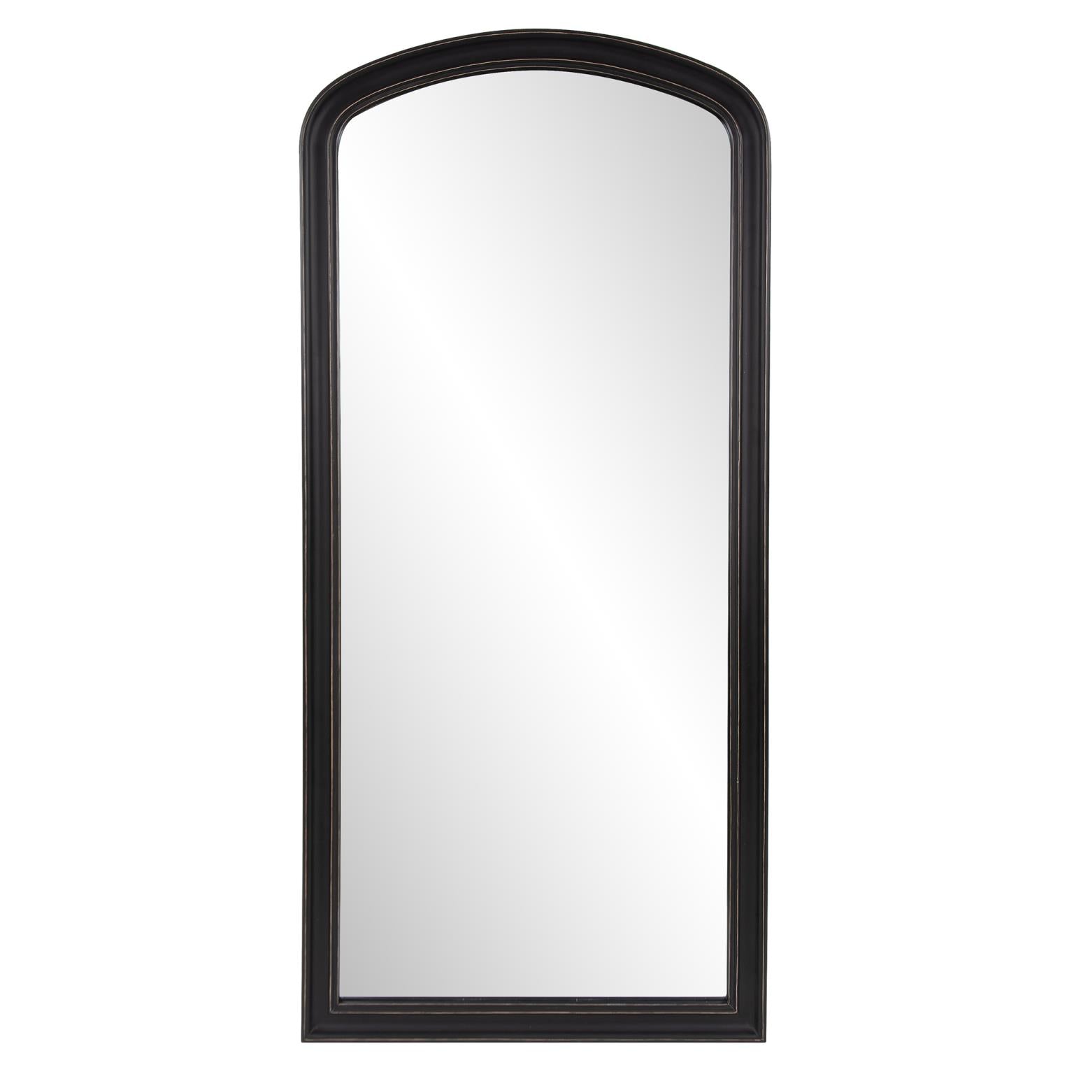 - The Domenico Mirror boasts a hand-crafted wood frame in a stylish distressed black finish.