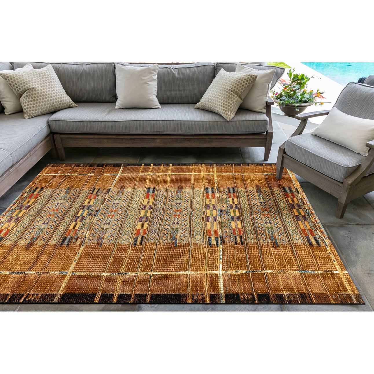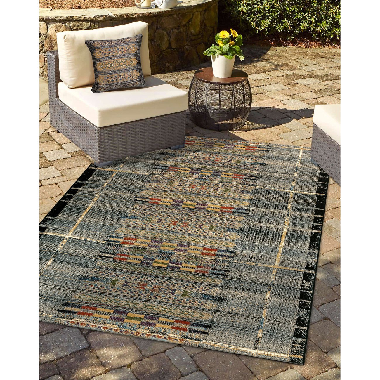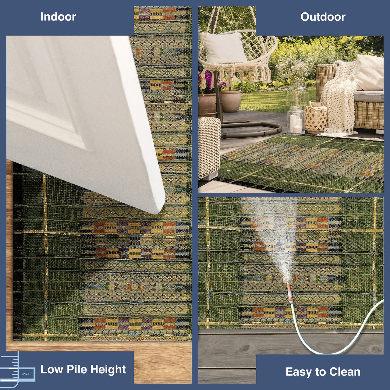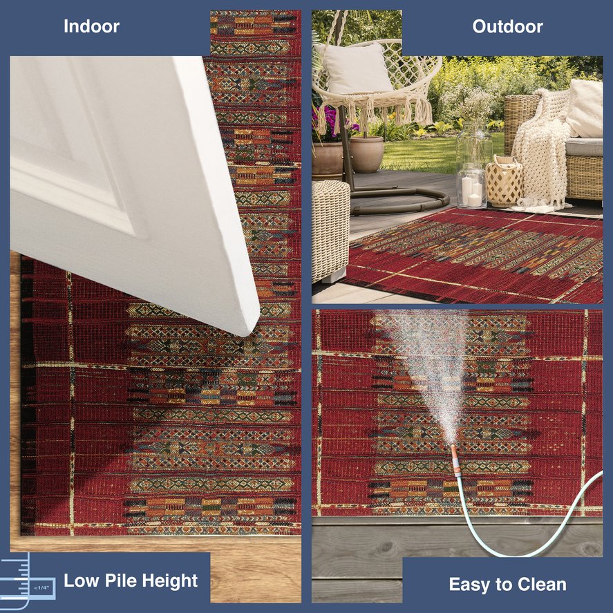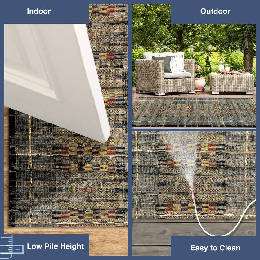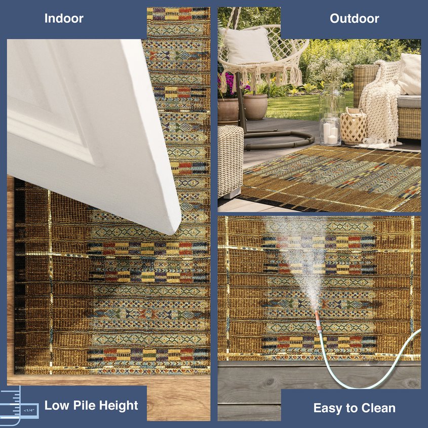 - A Flatweave Performance area rug made from Durable and Fade Resistant 75% Polypropylene/25% polyester, UV Stabilized, UV Protected, Easy Care, Non-Shed, Weather Resistant Foldable All-Purpose Low Profile