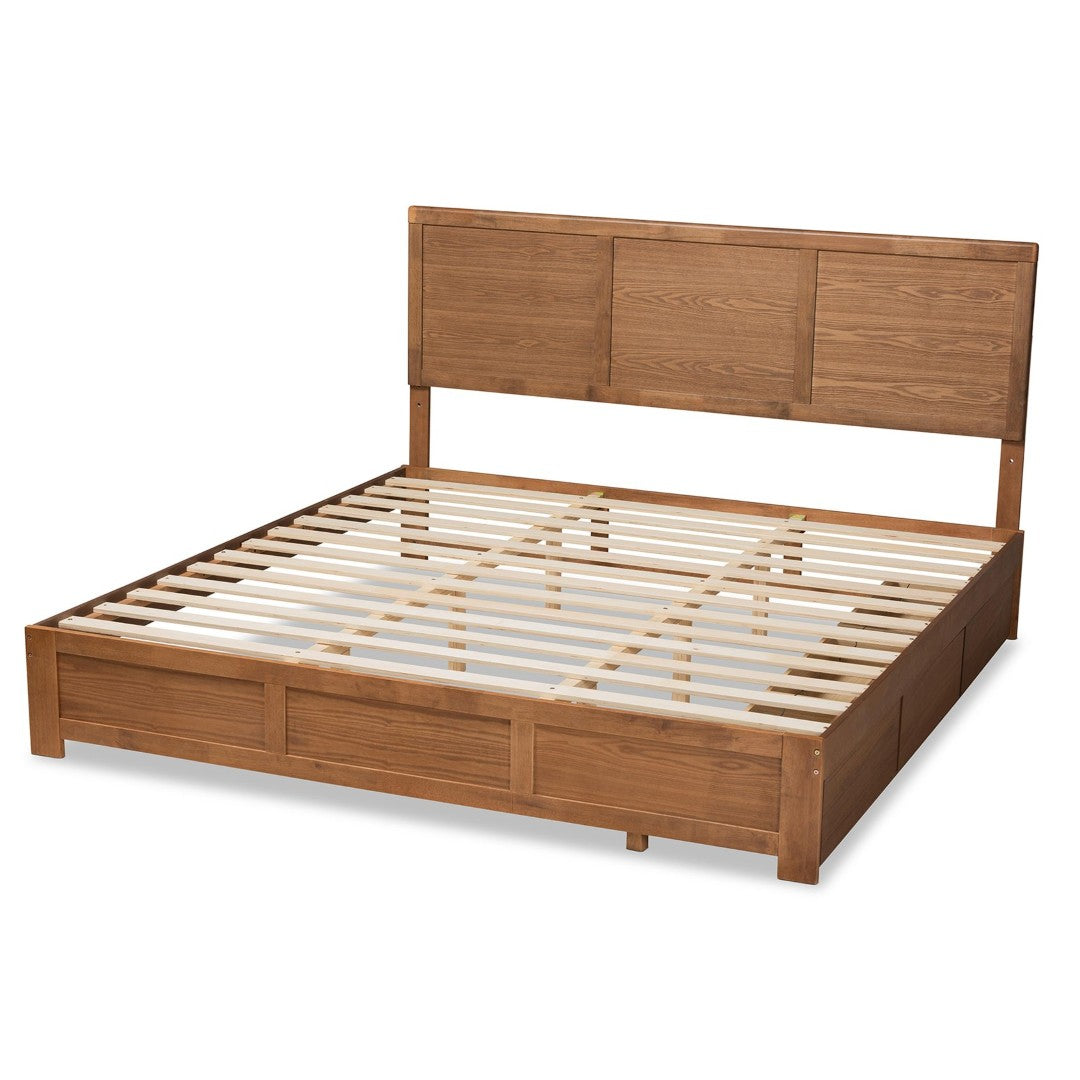 Bring modern warmth and smart storage to your bedroom with the Aras platform bed. Crafted with an ash walnut finish and clean transitional lines, this full-size bed combines reliable construction, adjustable headboard heights, and three roomy undershelf drawers to maximize floor space and keep your room organized. Its built-in slat system removes the need for a box spring, delivering a streamlined look and straightforward setup for everyday comfort.