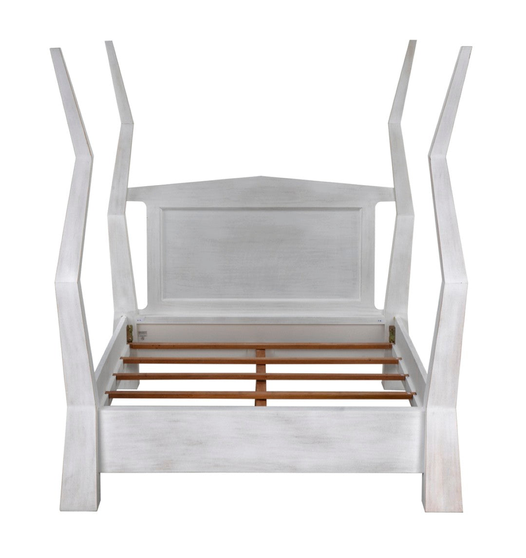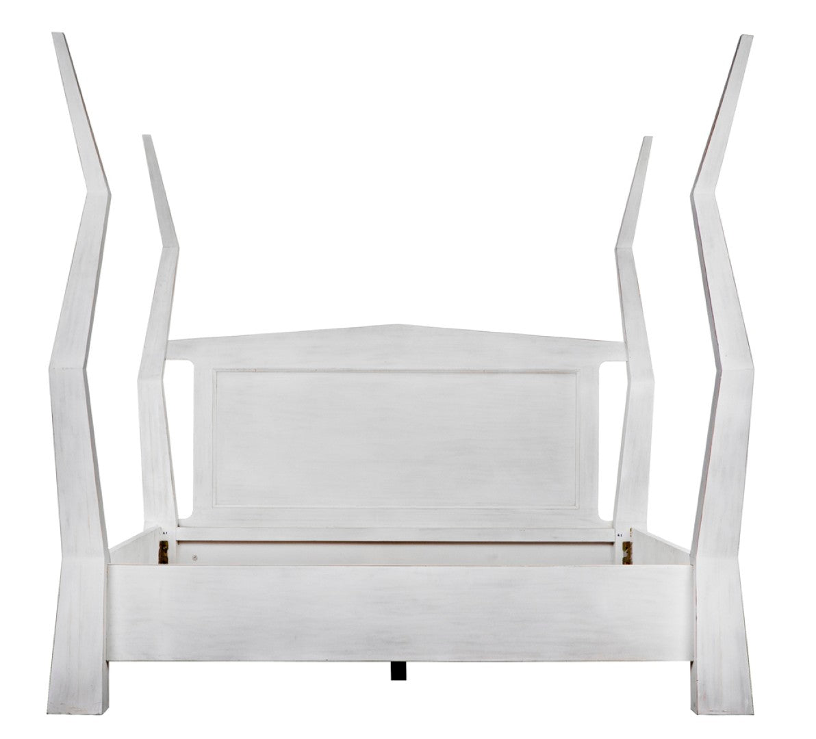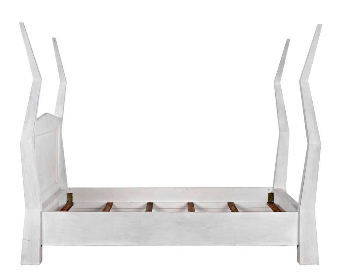 Bring bold, sculptural presence to your bedroom with the Patras bed—an artful mahogany piece that combines modern geometric lines with a warm white wash finish. Its dramatic totem post design creates a striking focal point while delivering sturdy, lasting construction and a refined aesthetic that complements both contemporary and transitional interiors.